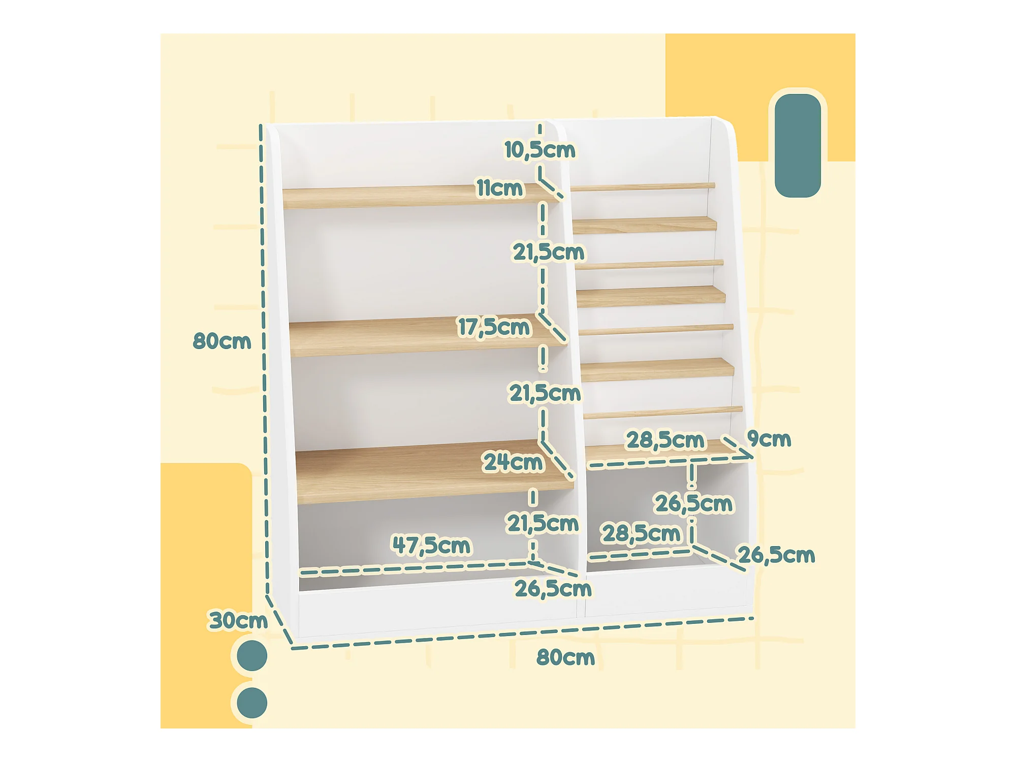 Joyz étagère pour enfants avec 8 compartiments de rangement + 2 boîtes amovibles
