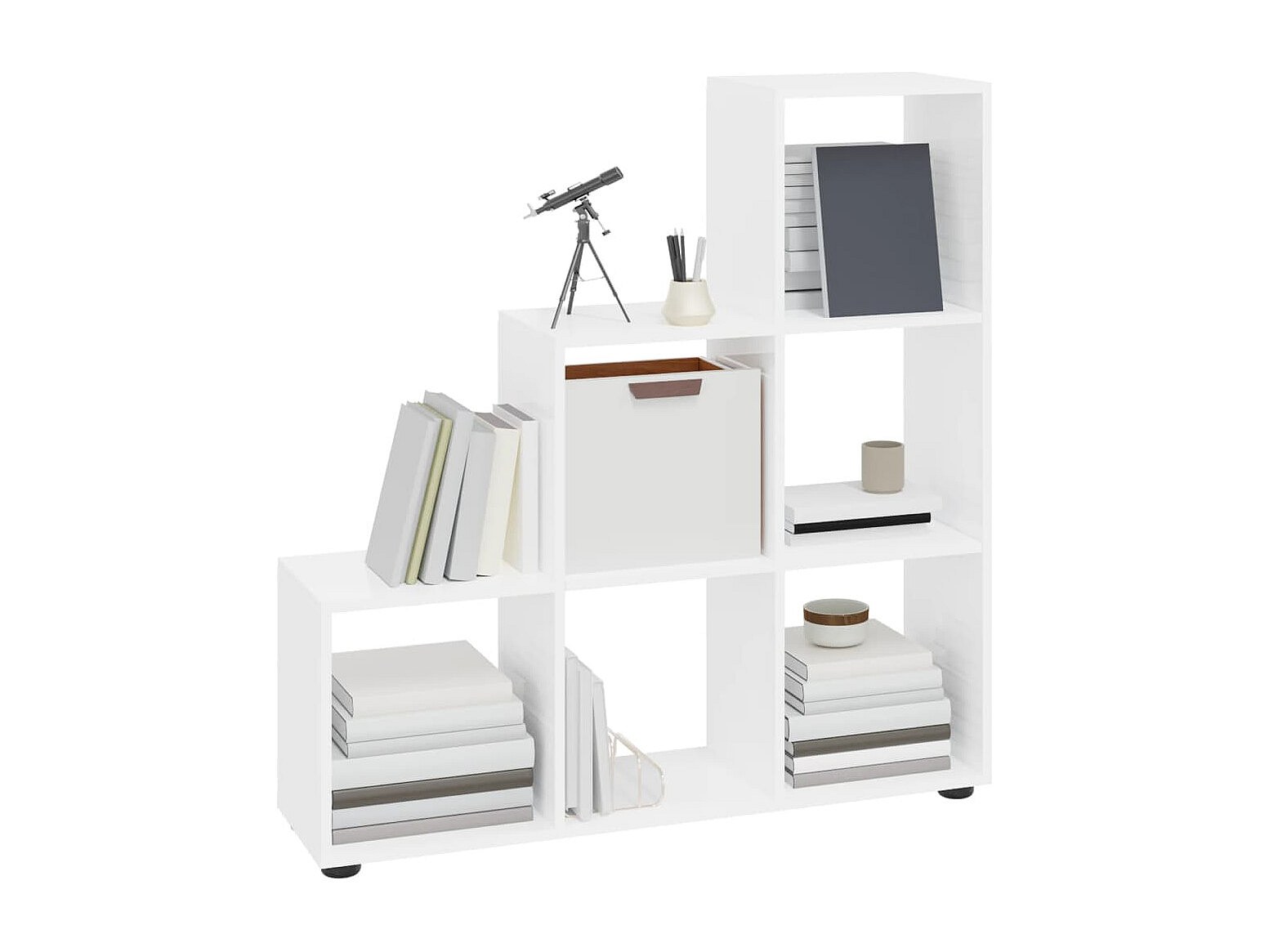 Bibliothèque séparatrice de pièce à 3 niveaux blanc 123x29x123 cm