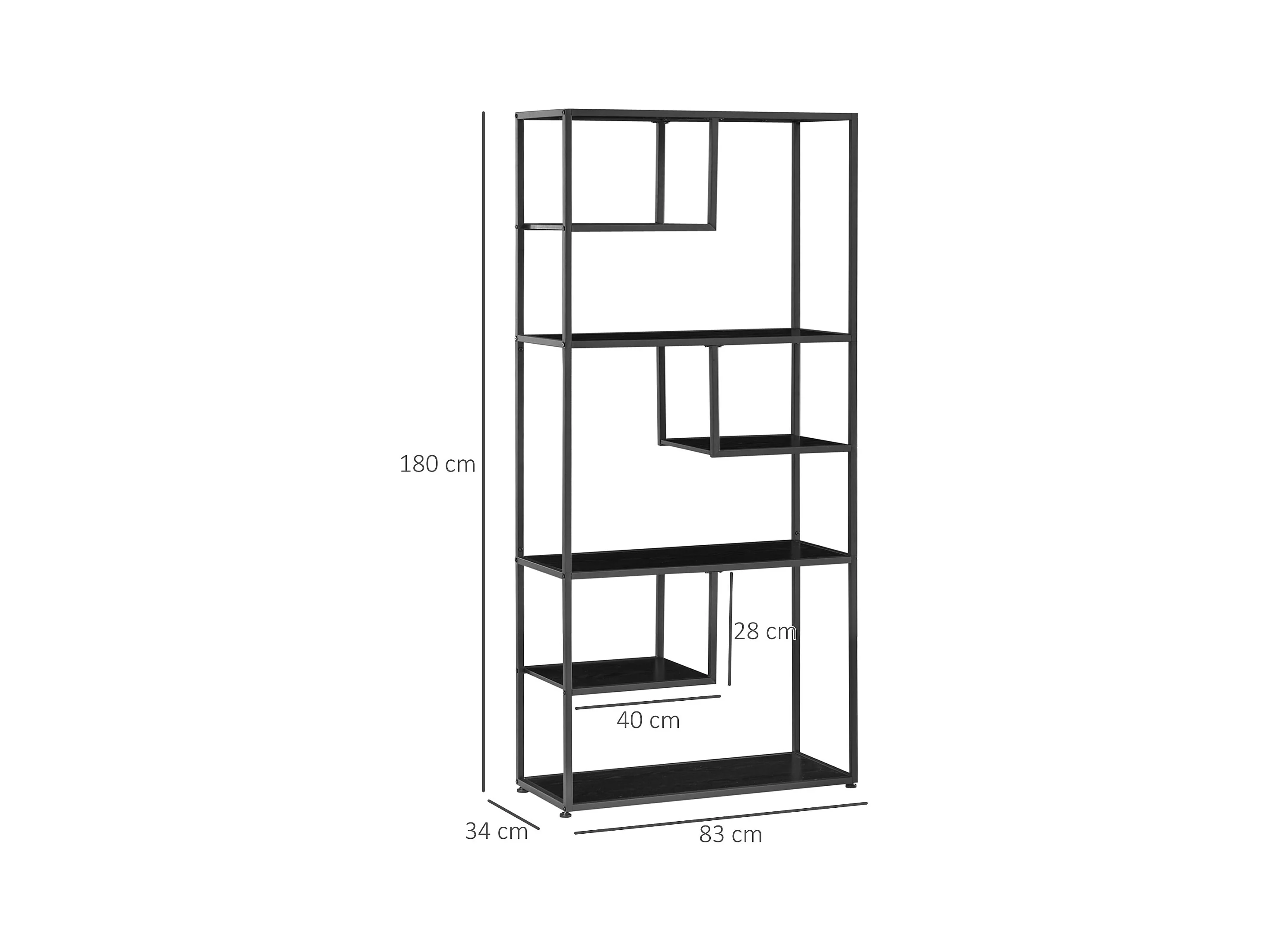 Bibliothèque design asymétrique – Pieter – 5 étagères. 10 compartiments de rangement. 83x23x173cm