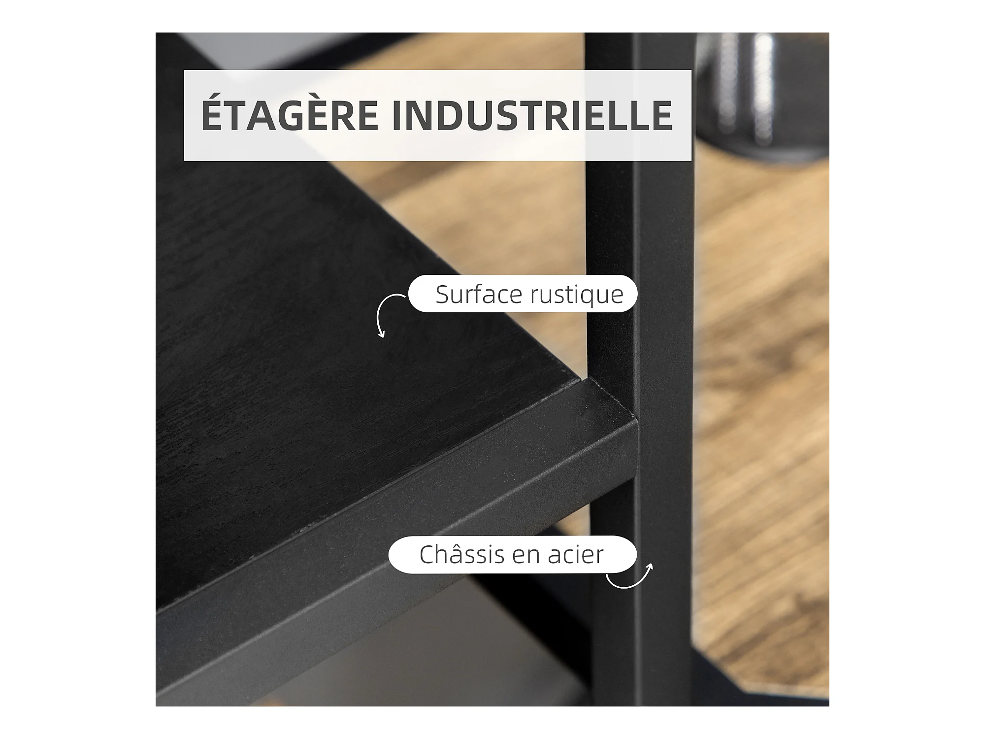 Bibliothèque étagère de rangement à 7 niveaux style industriel acier bois noir