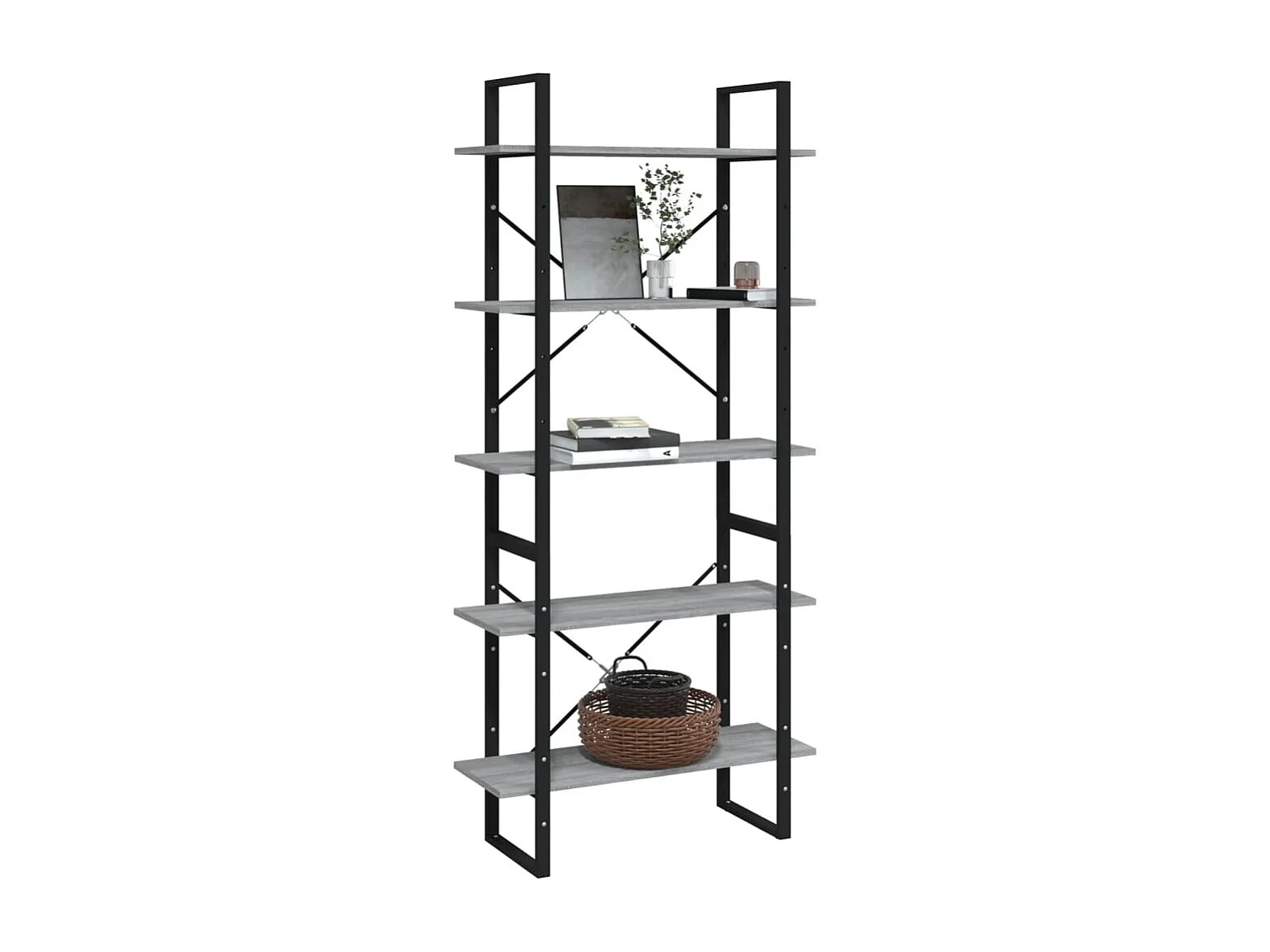 Bibliothèque | Etagère de rangement | Meuble de rangement 5 niveaux Sonoma gris 80x30x175 cm