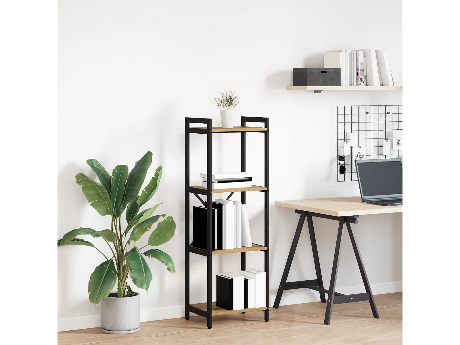 Bibliothèque | Etagère de rangement | Meuble de rangement chêne artisanal 40 x 30 x 118 cm Bois et Acier