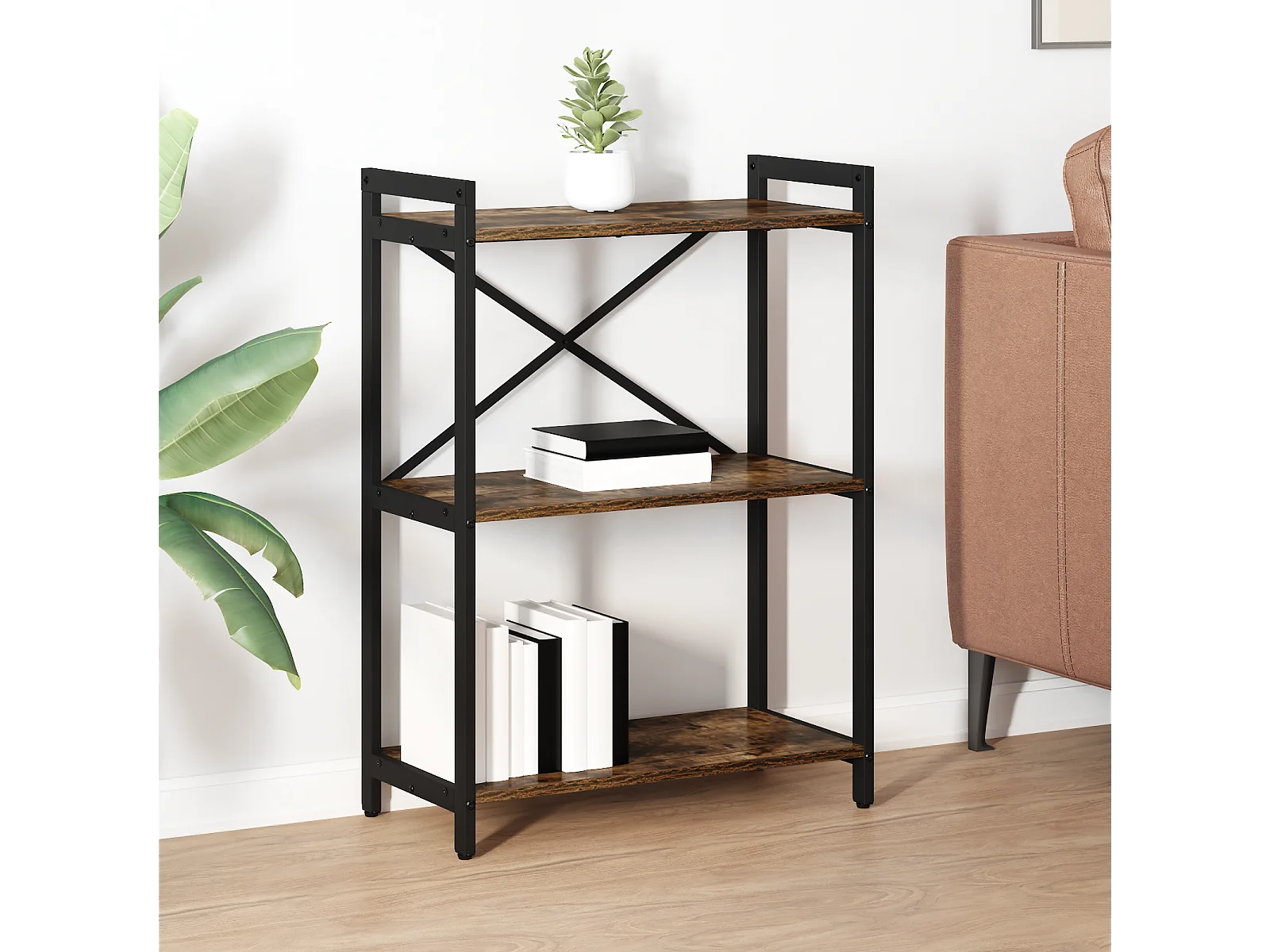 Bibliothèque | Etagère de rangement | Meuble de rangement Chêne fumé 60 x 30 x 188 cm MDF et acier