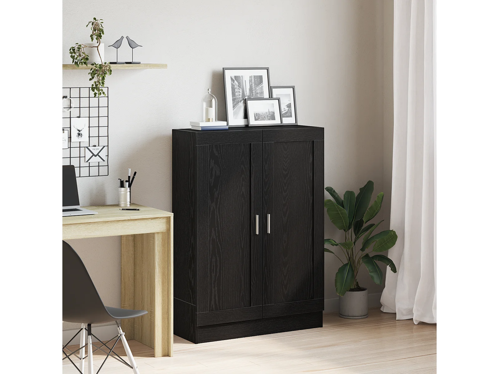 Bibliothèque, étagère à 4 niveaux avec 2 portes, meuble de rangement avec patins anti