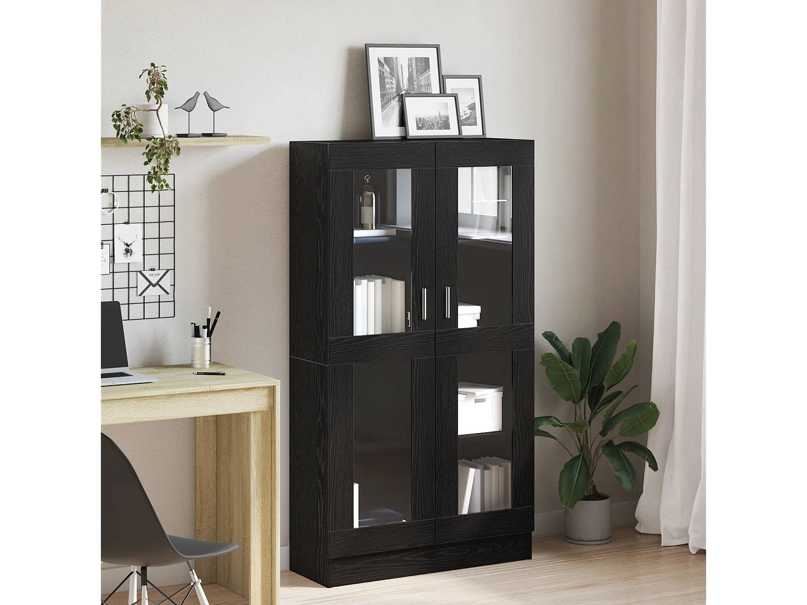 Bibliothèque | Etagère de rangement | Meuble de rangement en noir et chêne, 82,5x30,5x150 cm, en bois d'ingénierie