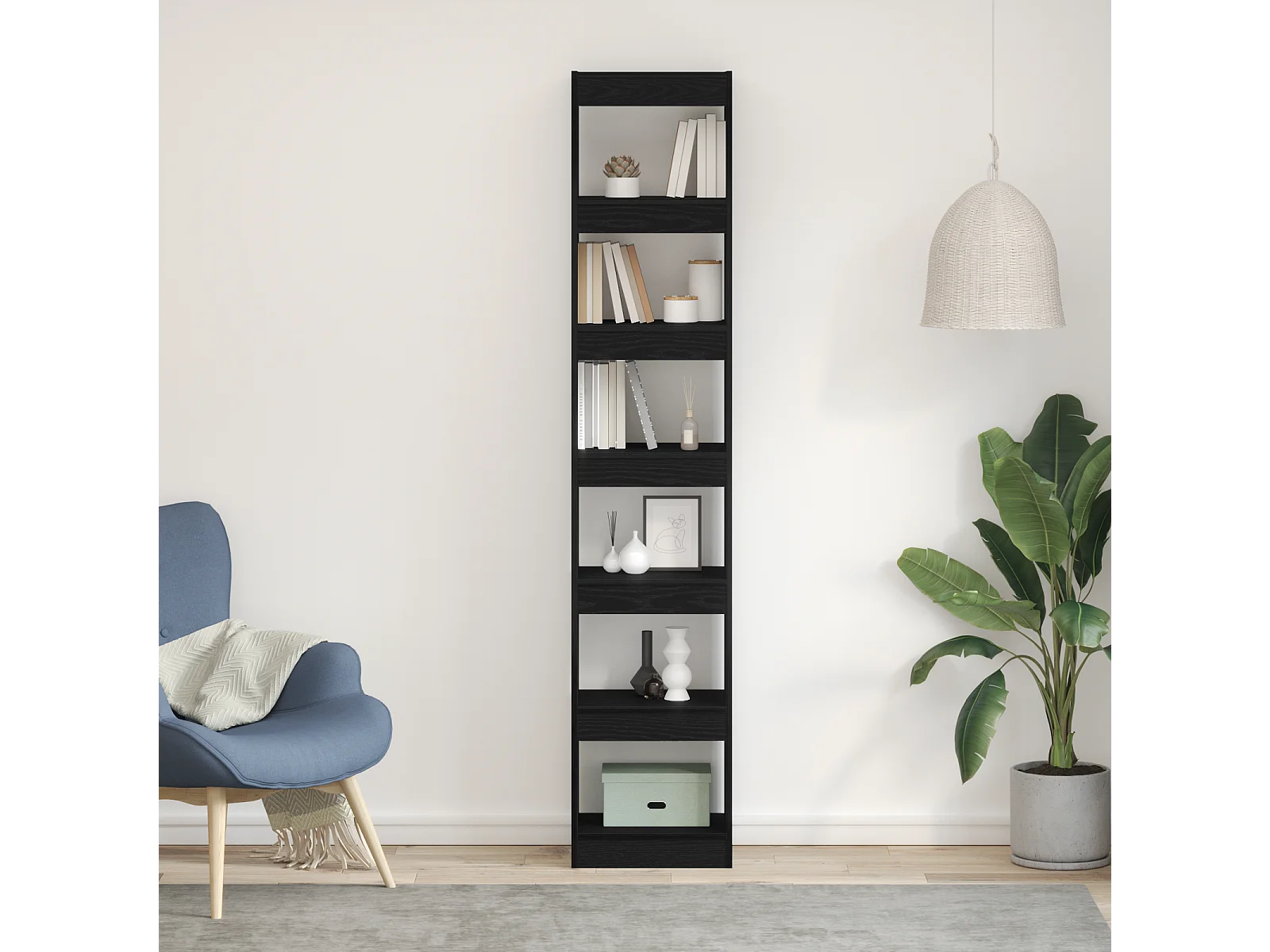 Bibliothèque | Etagère de rangement | Meuble de rangement Noir Chêne 40x30x198 cm en Bois d'ingénierie