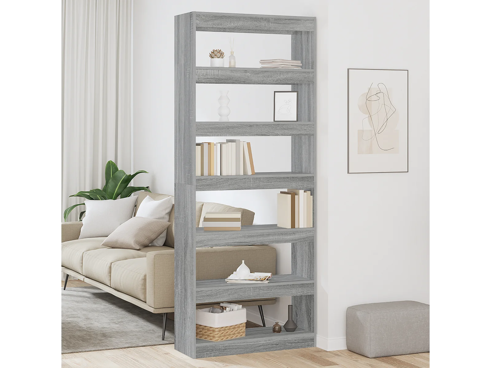 Bibliothèque | Etagère de rangement | Meuble de rangement Sonoma gris 80 x 30 x 198 cm Bois d'ingénierie
