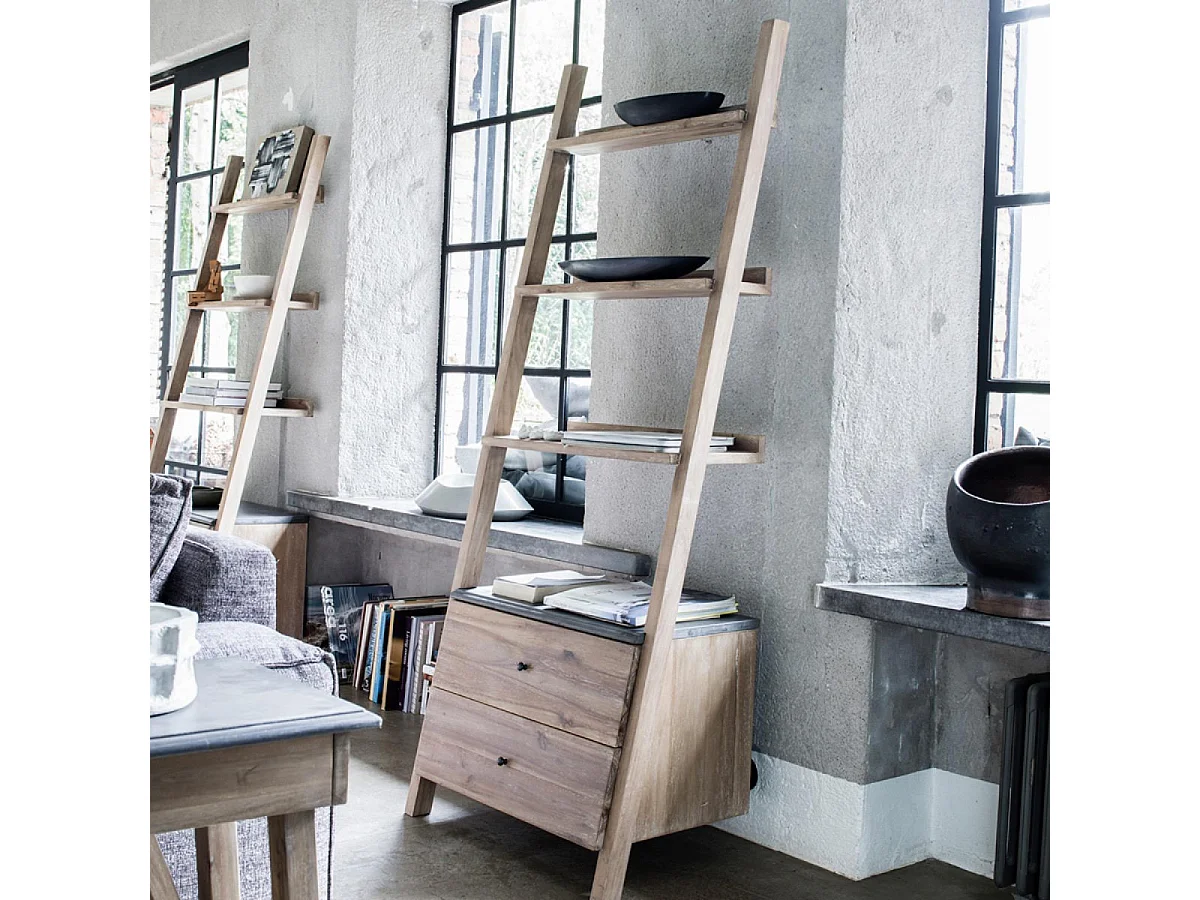 Bibliothèque étagère échelle Bois Gris - Horizon Interior's