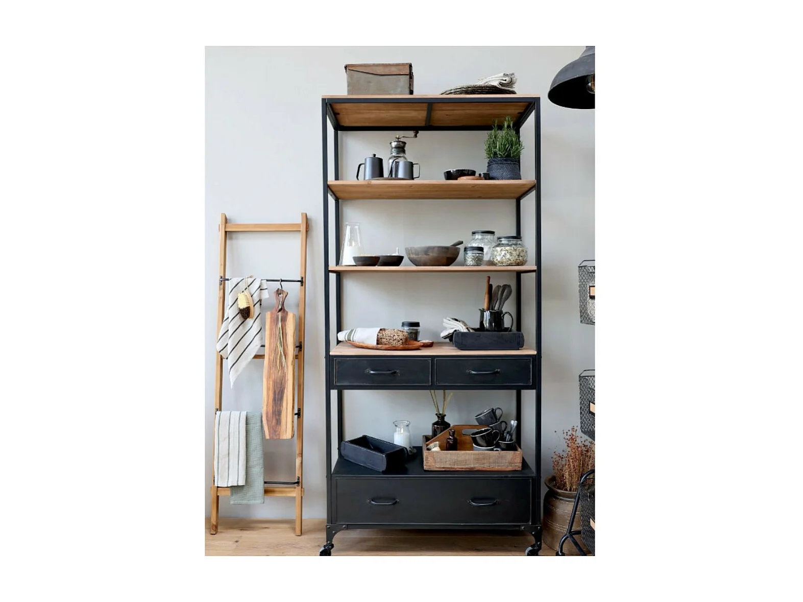 Bibliothèque étagère en bois marron et fer noir 91.5 x 42 x 200 cm