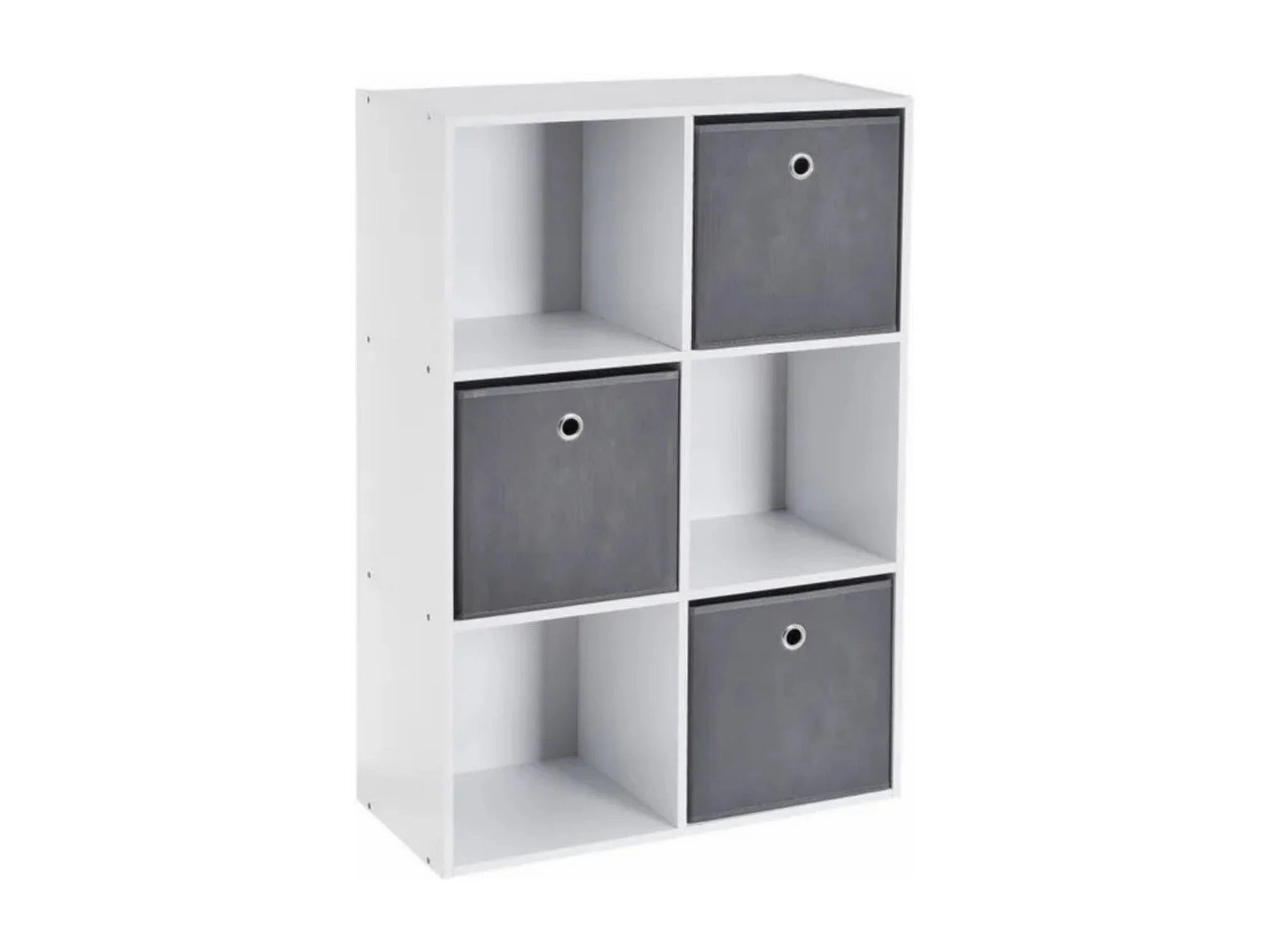Bibliothèque étagère meuble de rangement coloris blanc/gris - Longueur 60 x Profondeur 28 x Hauteur 89 cm