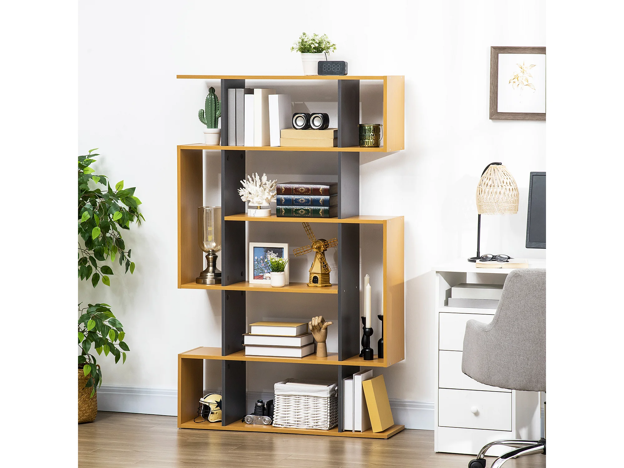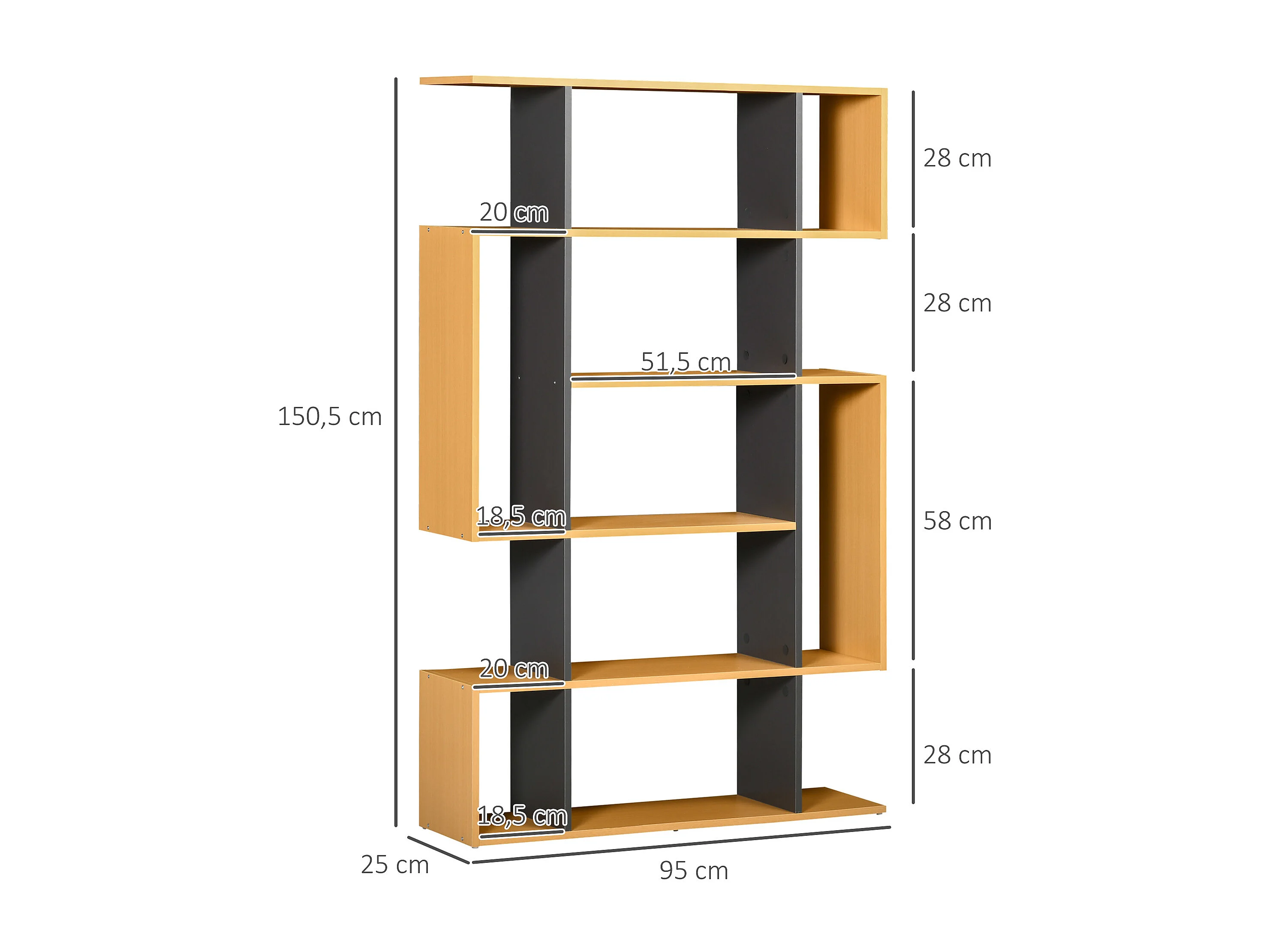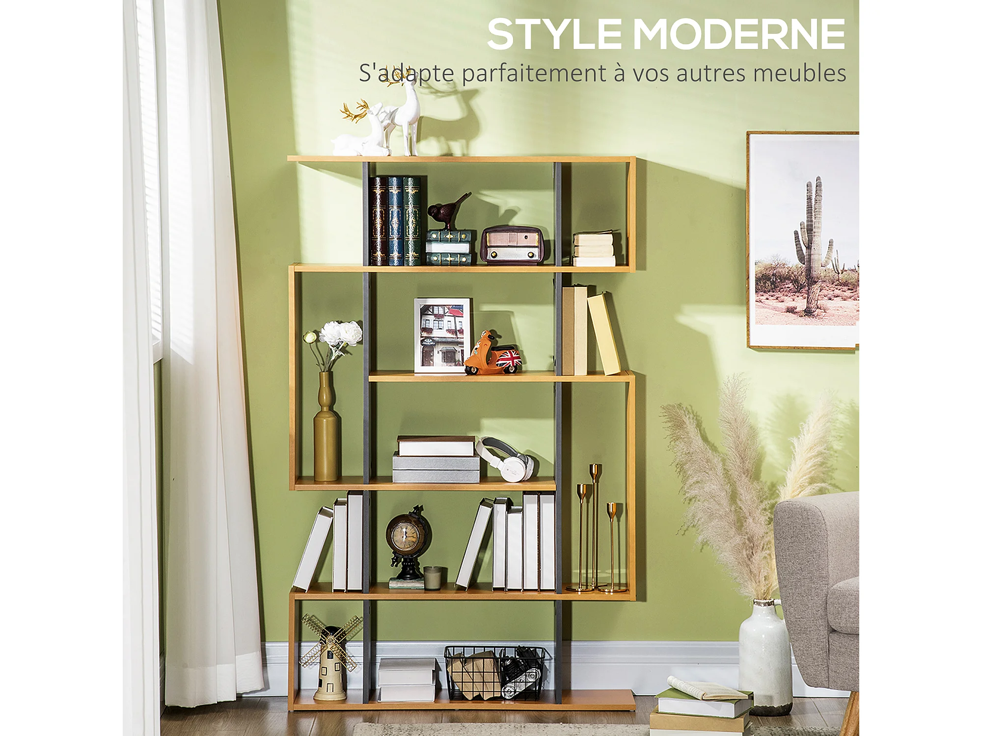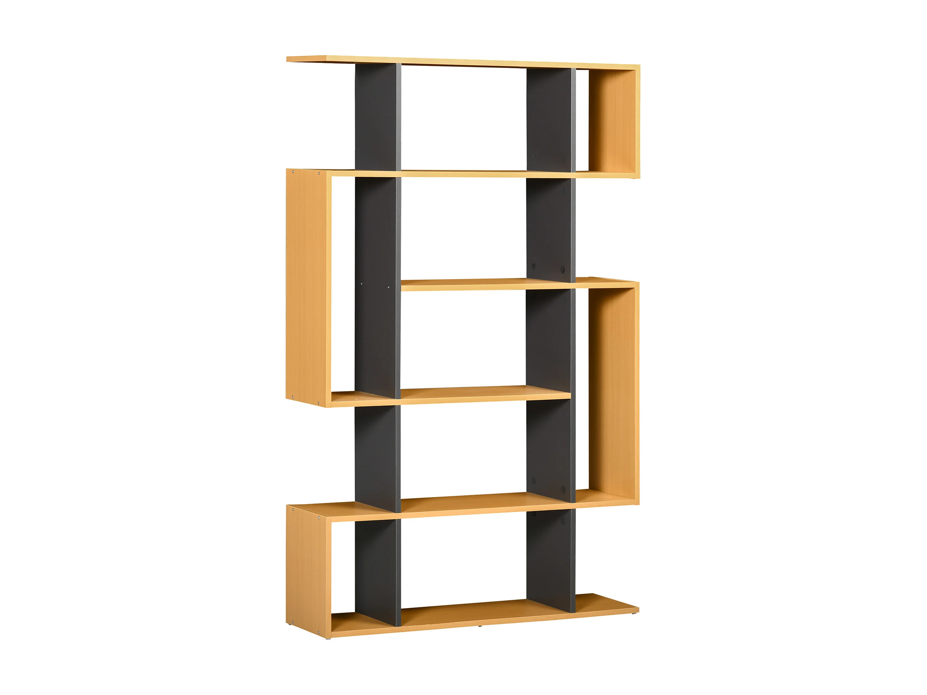 Bibliothèque étagère meuble de rangement design contemporain en S 13 étagères dim. 95L x 25l x 150H cm aspect bois clair gris