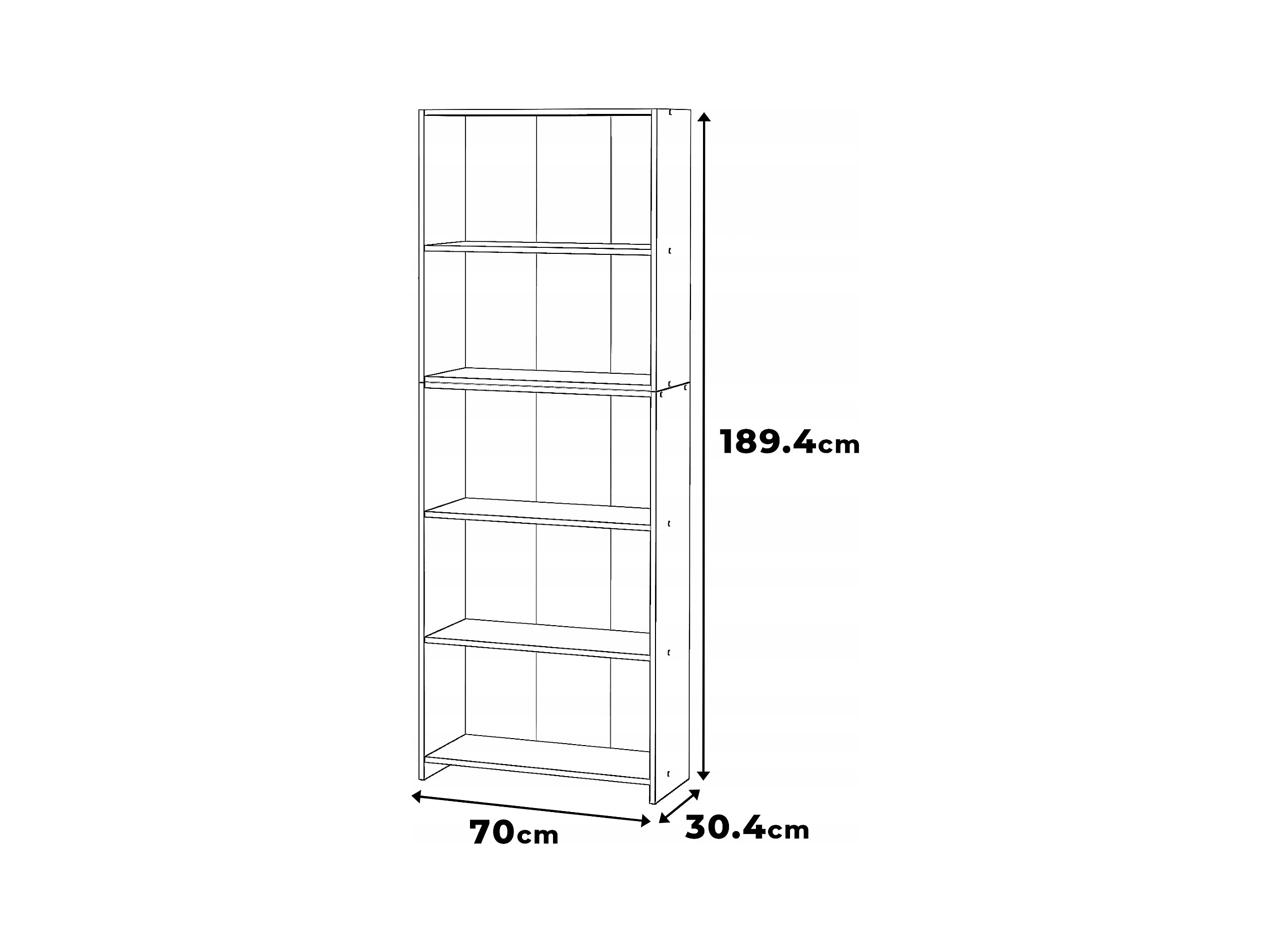 Bibliothèque -Étagère multifonction Chêne Wotan 5 niveaux 70X30x189cm – Pour livres, jouets et accessoires de bureau