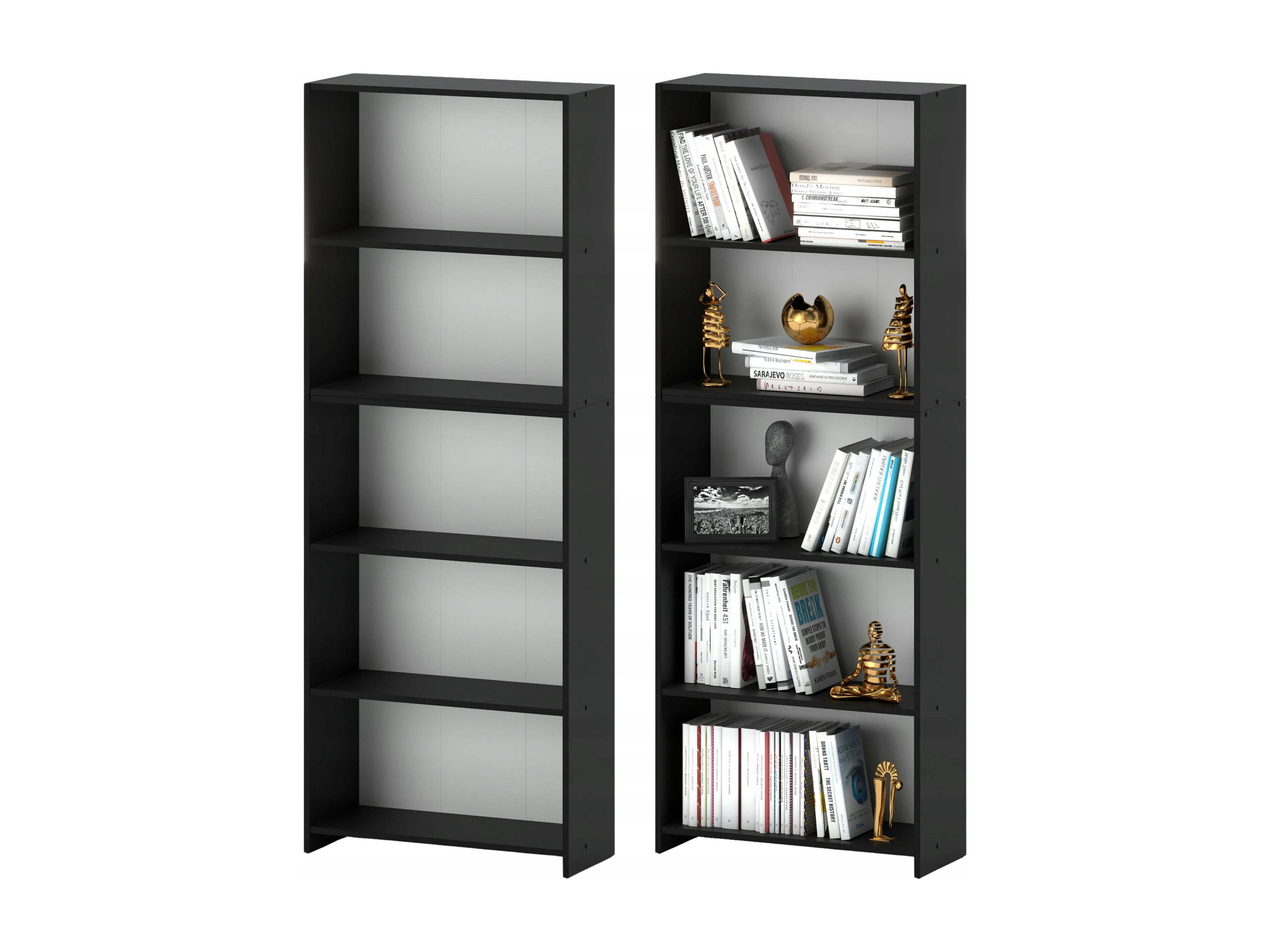 Bibliothèque -Étagère multifonction Noir 5 niveaux 110X30x189cm – Pour livres, jouets et accessoires de bureau