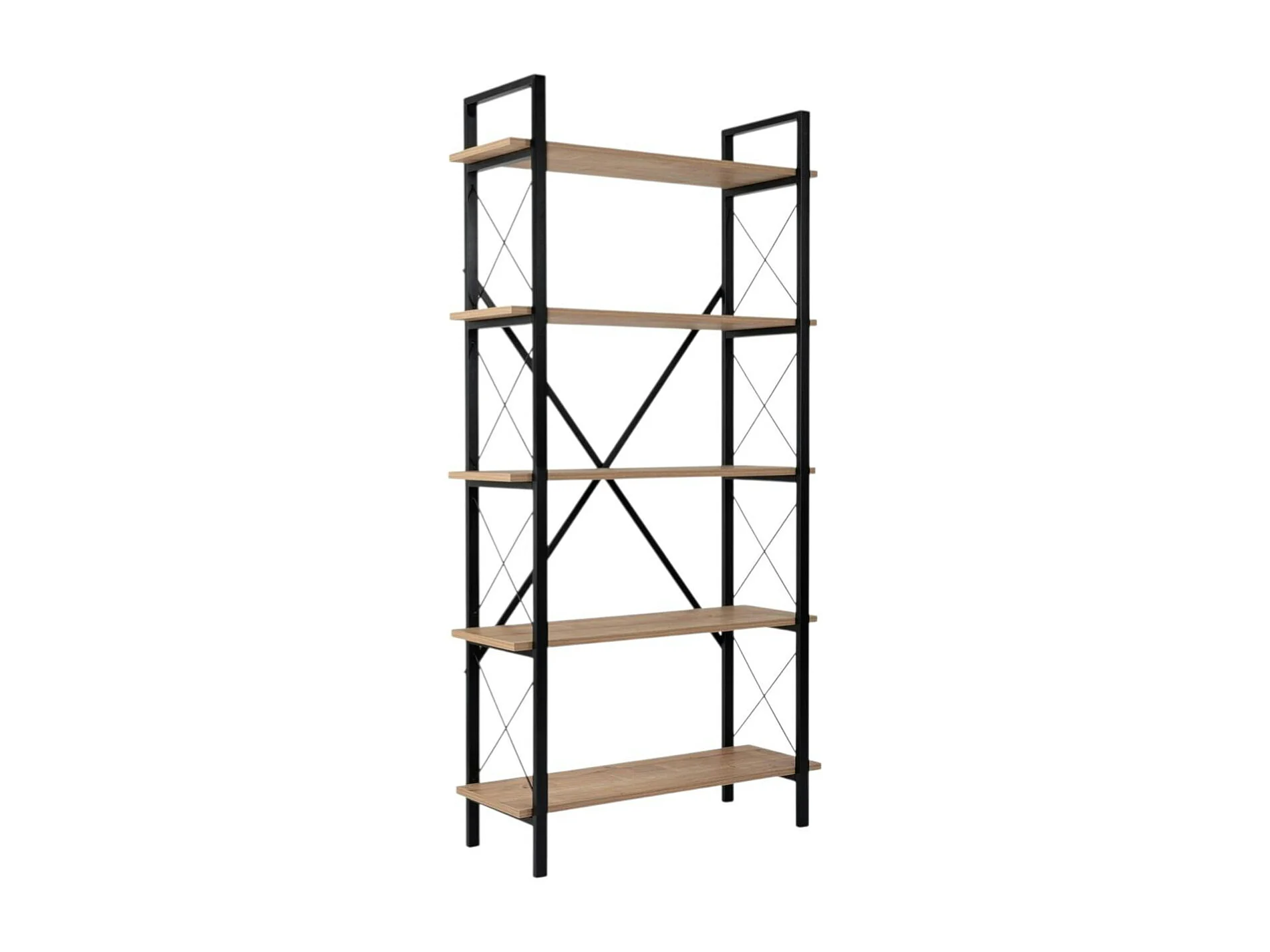 Bibliothèque étagère noire, 5 plateaux effet pin JENA