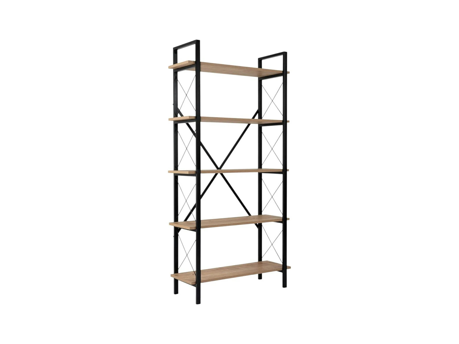 Bibliothèque étagère noire, 5 plateaux effet chêne clair JENA