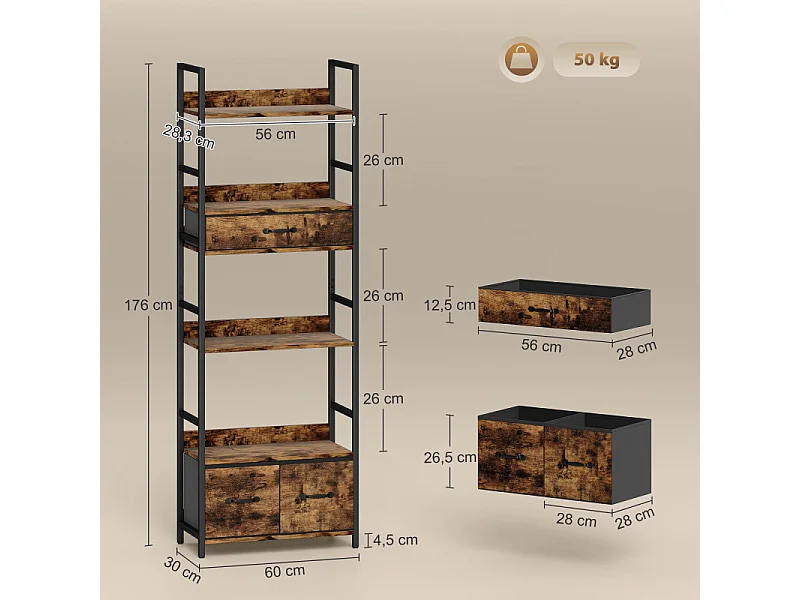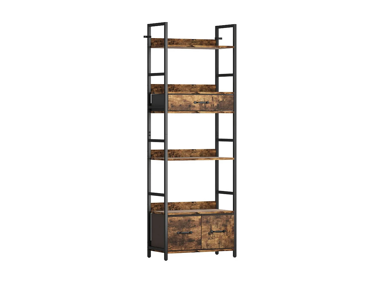 Bibliothèque étagère style industriel ELVAS brun rustique et noir