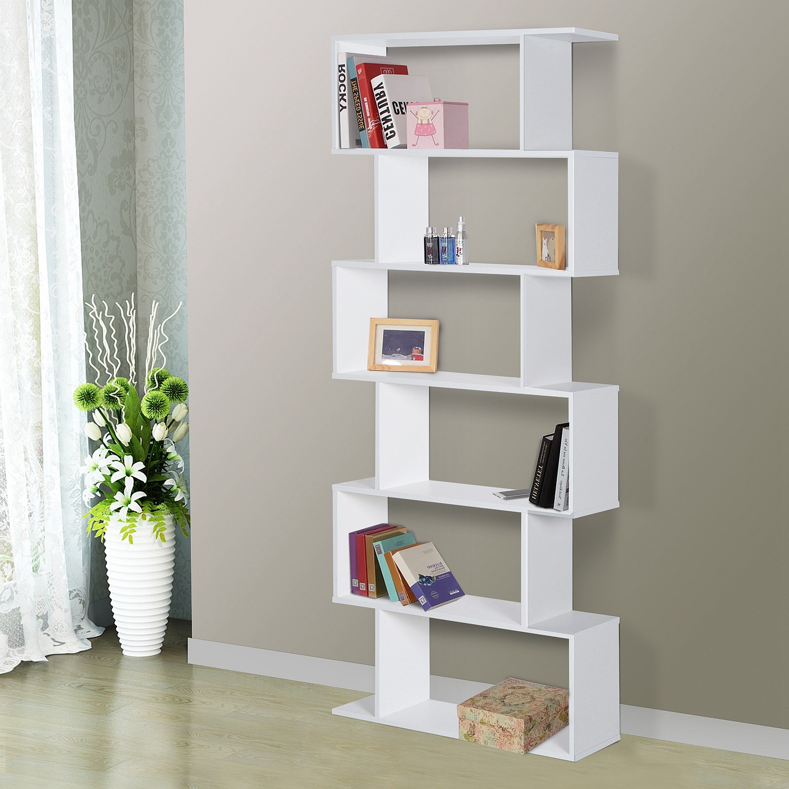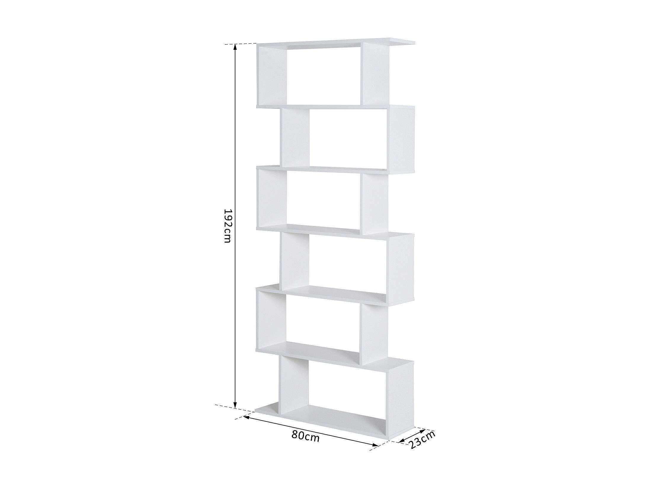 Bibliothèque étagère zig zag design contemporain 80L x 23l x 192H cm 6 niveaux blanc