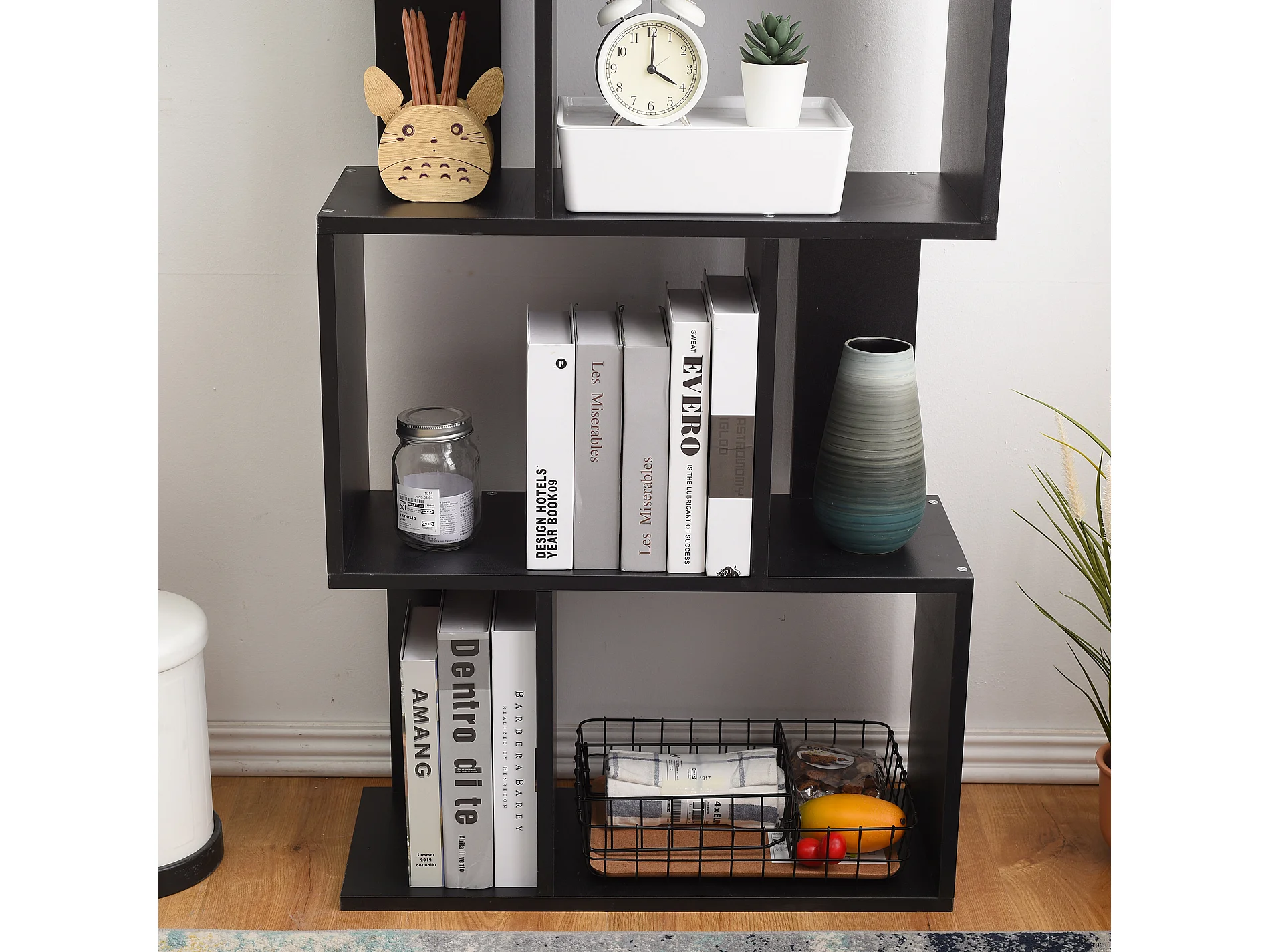 Bibliotheque Etageres Bois Noir Design Moderne 172,5x60x24