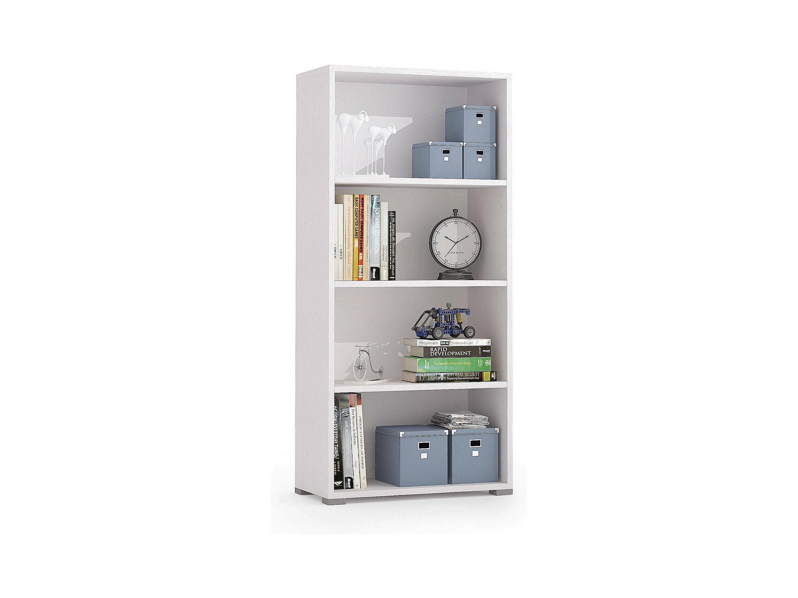 Bibliothèque Giacinto, Bibliothèque avec 3 étagères réglables, Étagère à livres, Élément mural avec étagères, 100% Made in Italy, 60x30h130 cm, Blanc