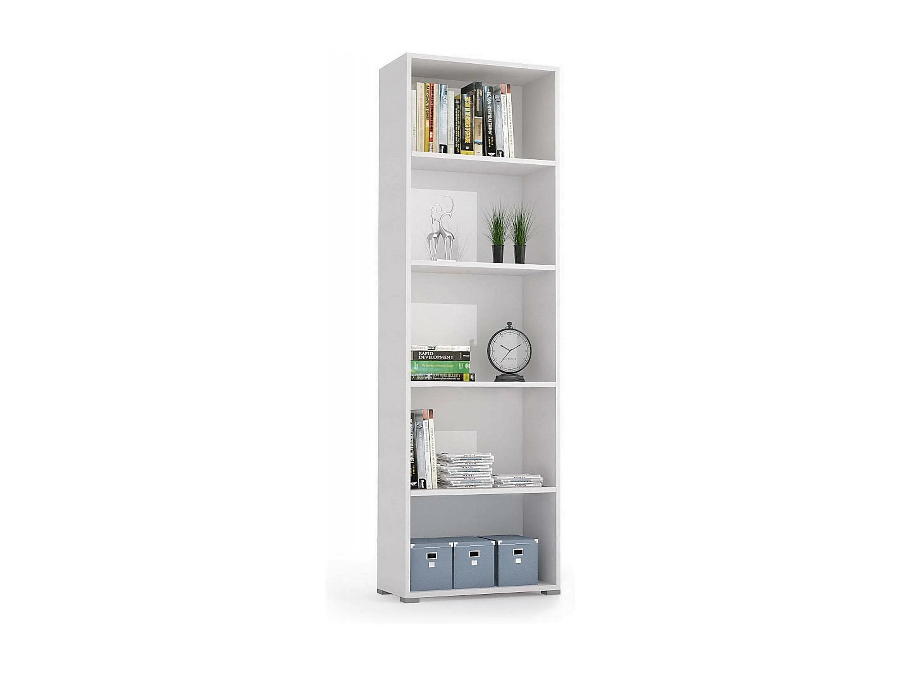 Bibliothèque Girasole, Bibliothèque avec 4 étagères réglables, Étagère à livres, Élément mural avec étagères, 100% Made in Italy, 60x30h195 cm, Blanc