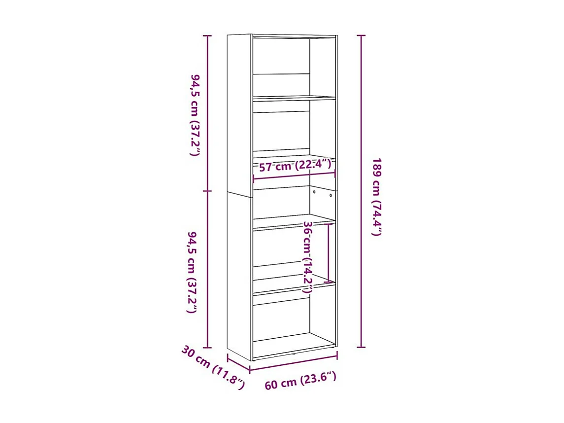 Bibliothèque à 4 niveaux sonoma gris 60x30x120