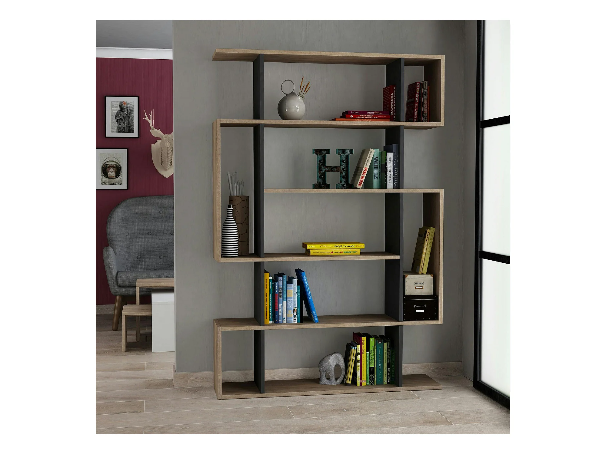 Bibliothèque gris foncé et effet chêne labyrinthe MARFA