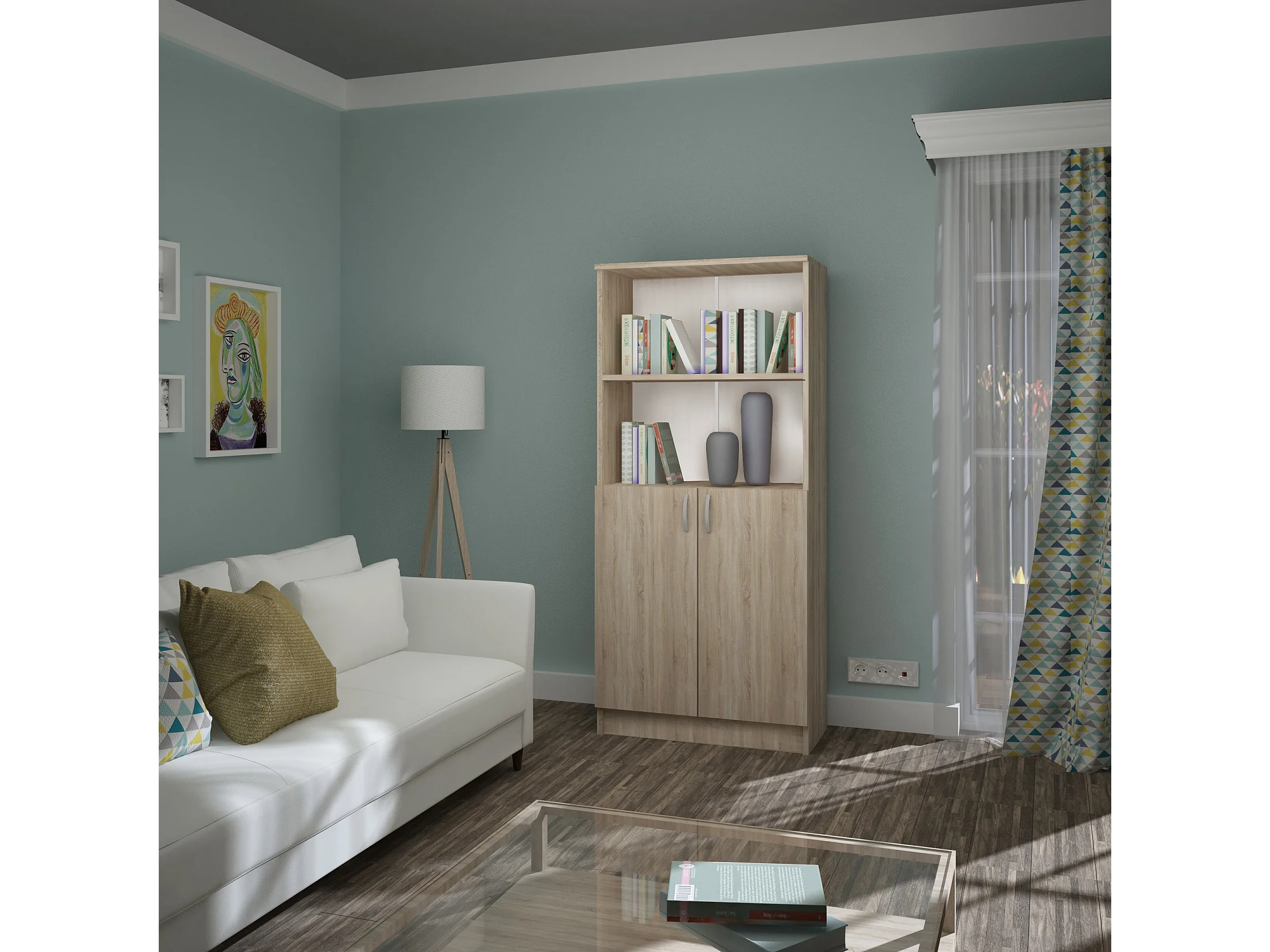 Bibliothèque haaus Flint, avec portes inférieures et 1 étagère, Chêne Sonoma, 70 x 32 x 159 cm