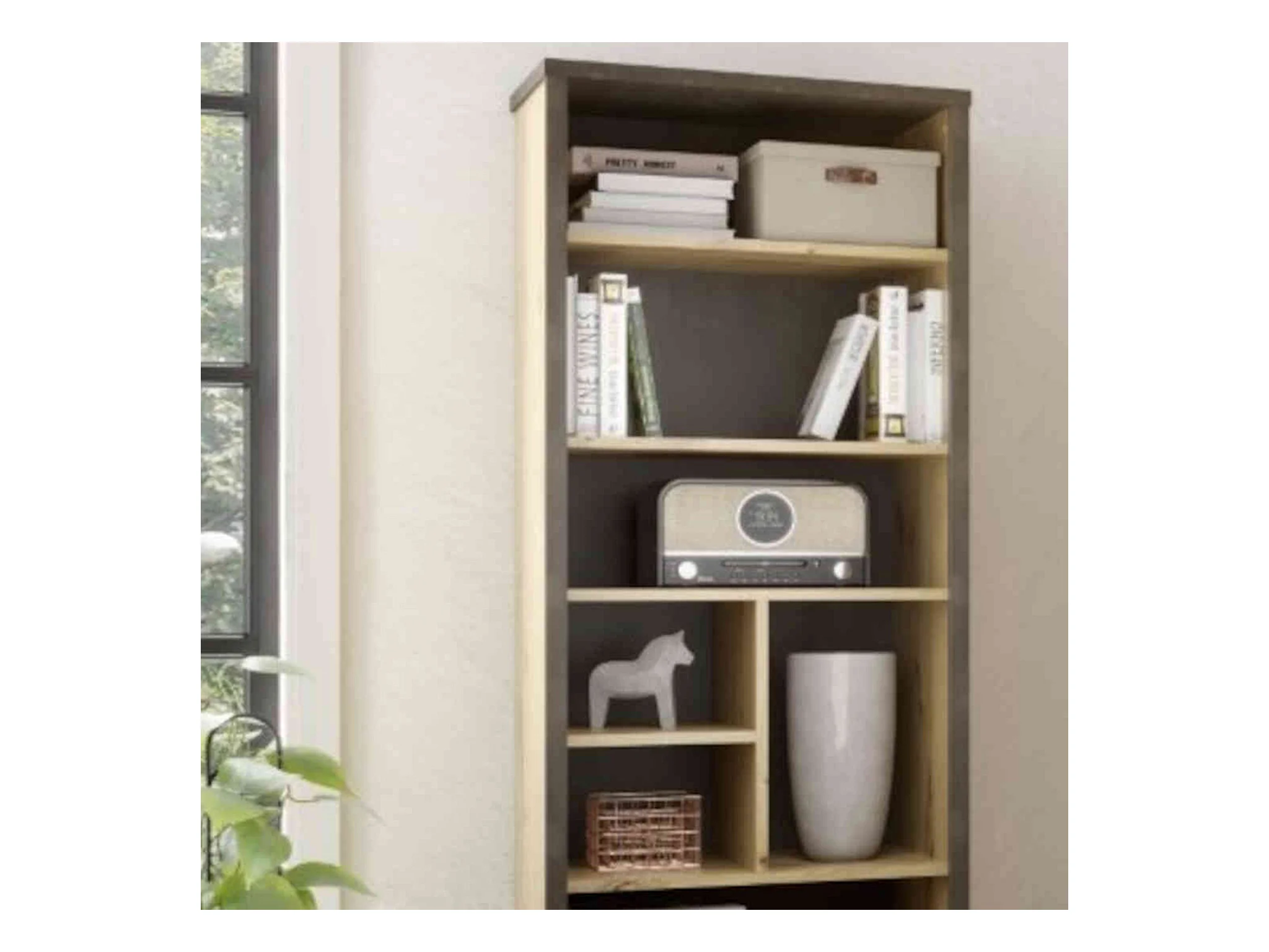 Bibliothèque haute 9 cases en bois imitation chêne clair - BI13001-1