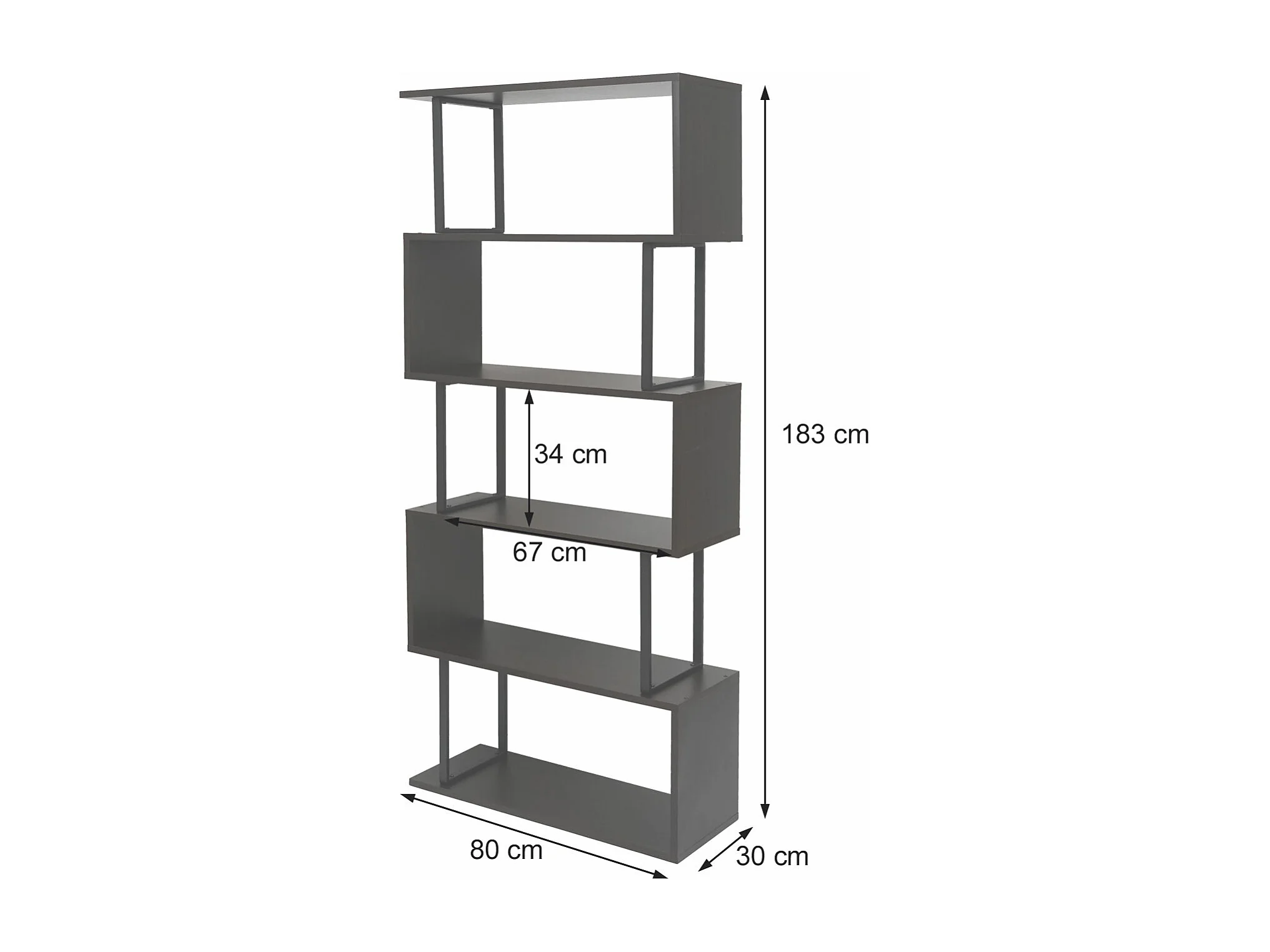 Bibliothèque HWC-A27, étagère indépendante, 183x80cm structure 3D, 5 niveaux - gris