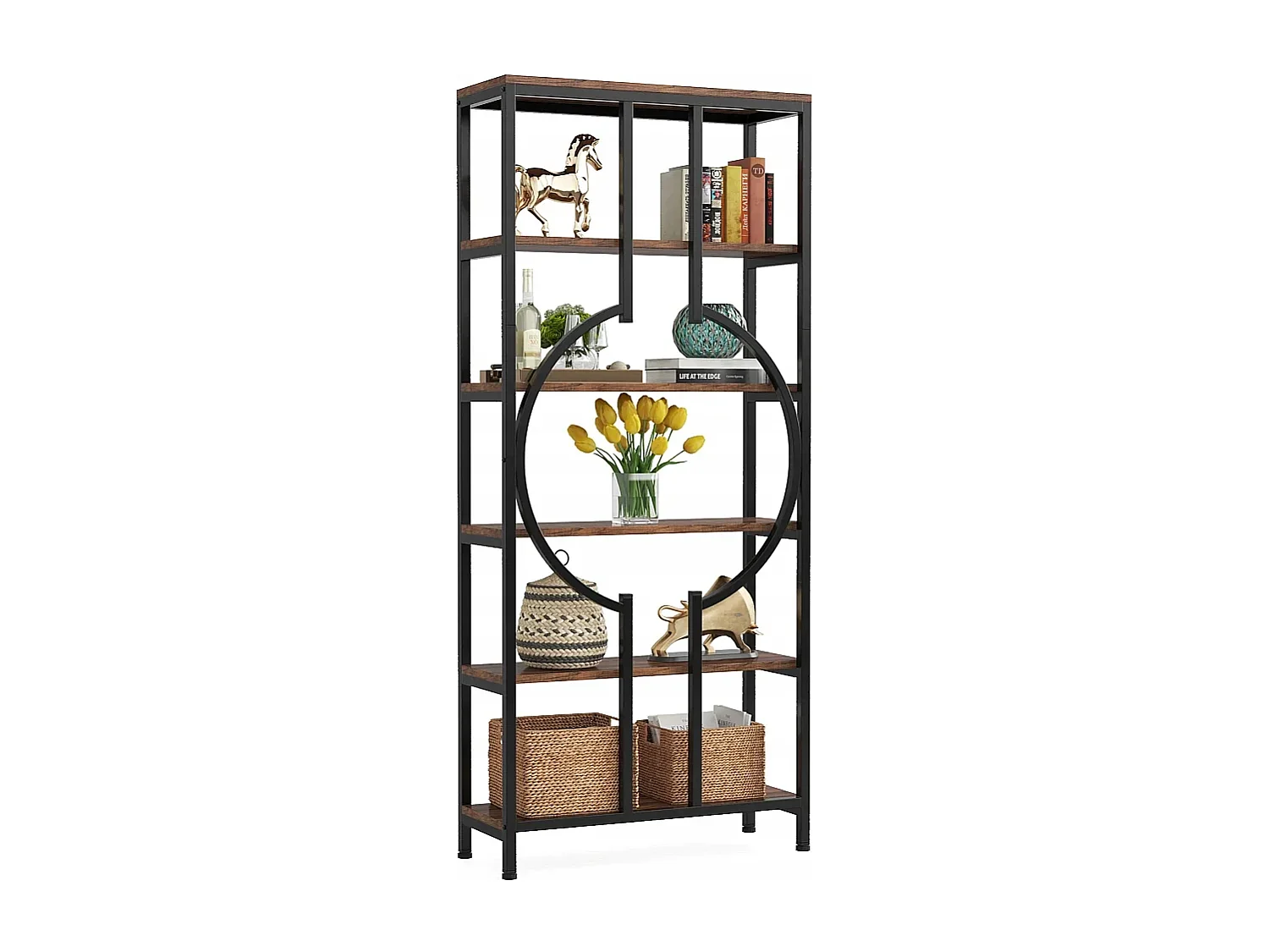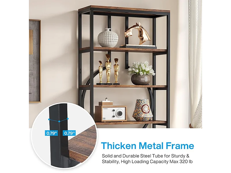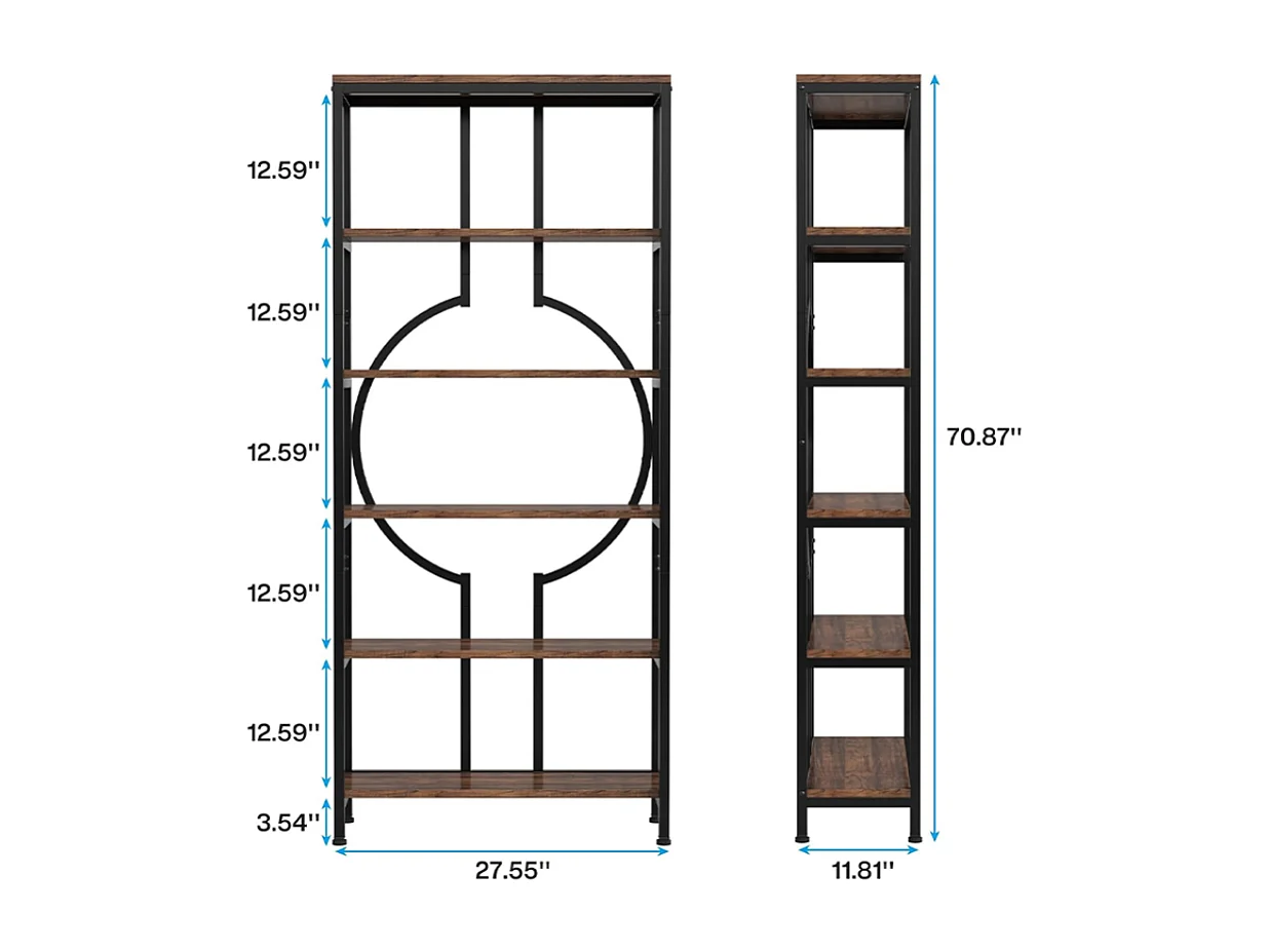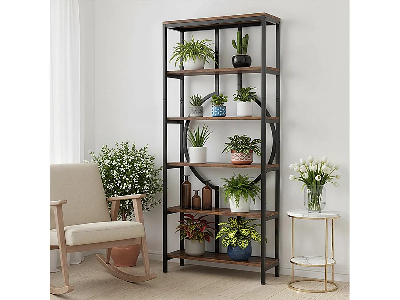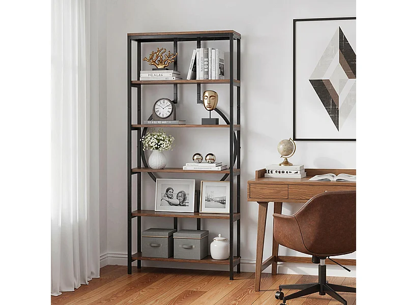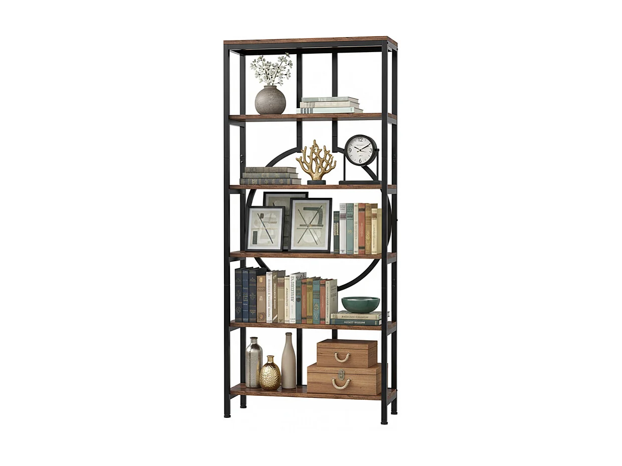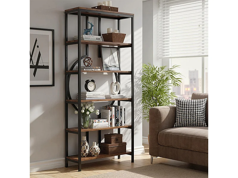 Bibliothèque Industrielle à 6 Niveaux, Haute Étagère Autonome avec Meuble de Rangement à 5 Ouvertures pour Salon