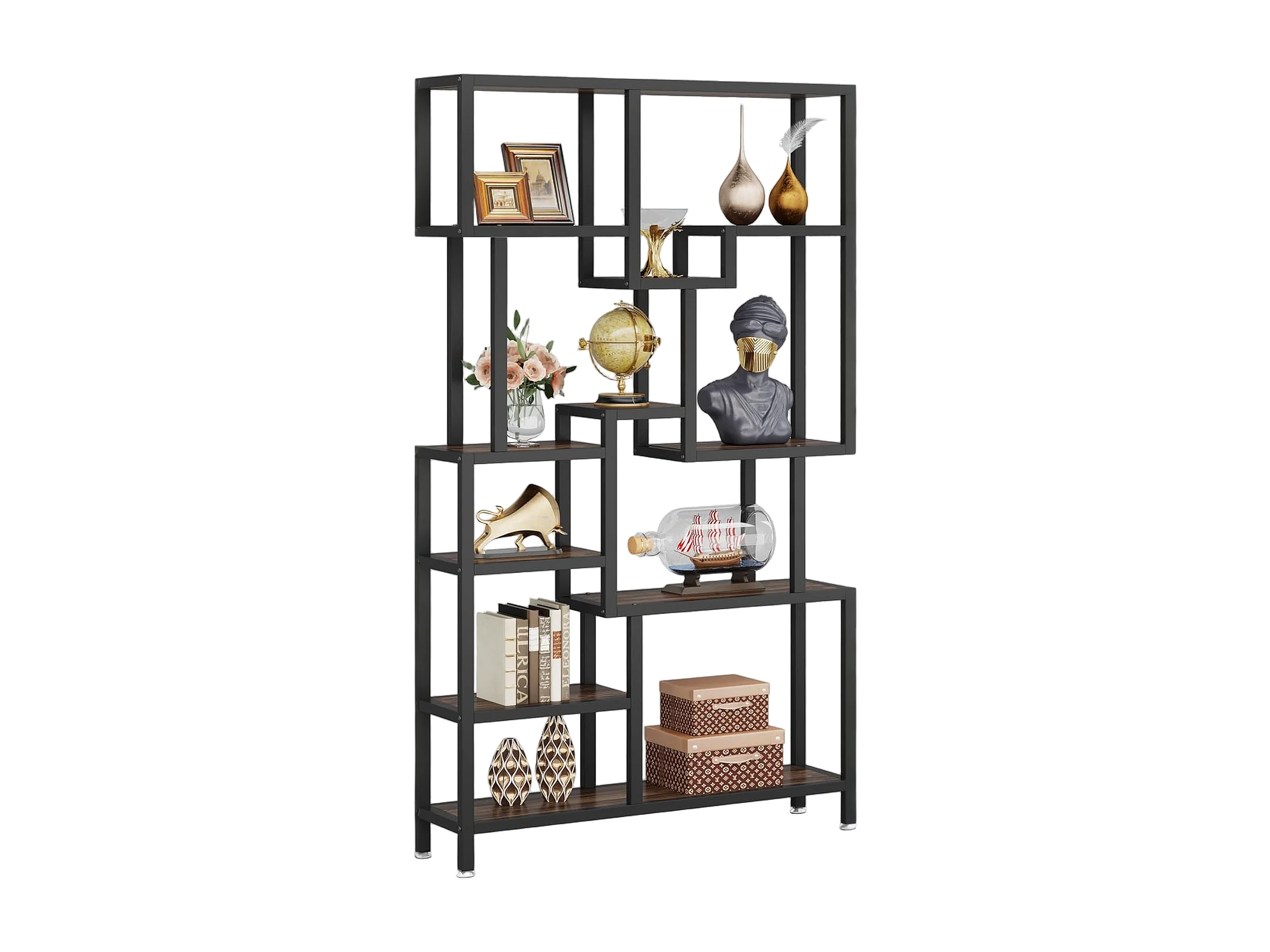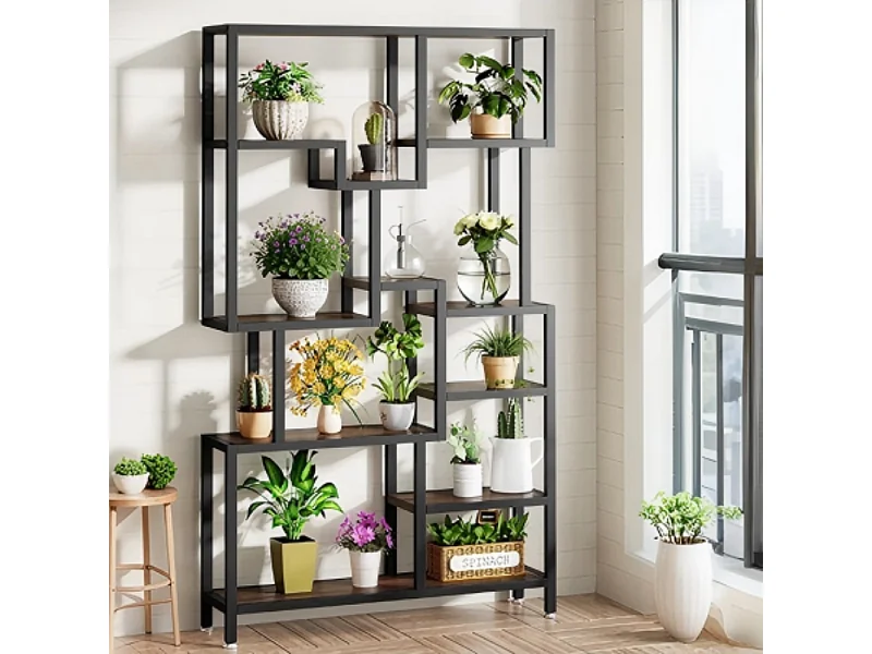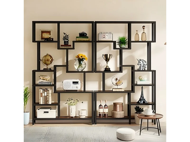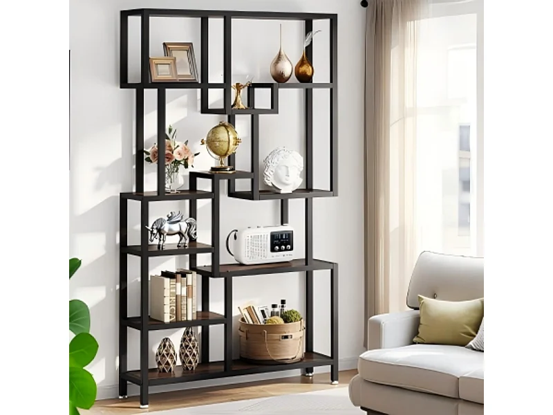 Bibliothèque Industrielle à 7 Niveaux de Rangement, Bibliothèque de 180 cm de Hauteur, étagère Ouverte avec Cadre en métal