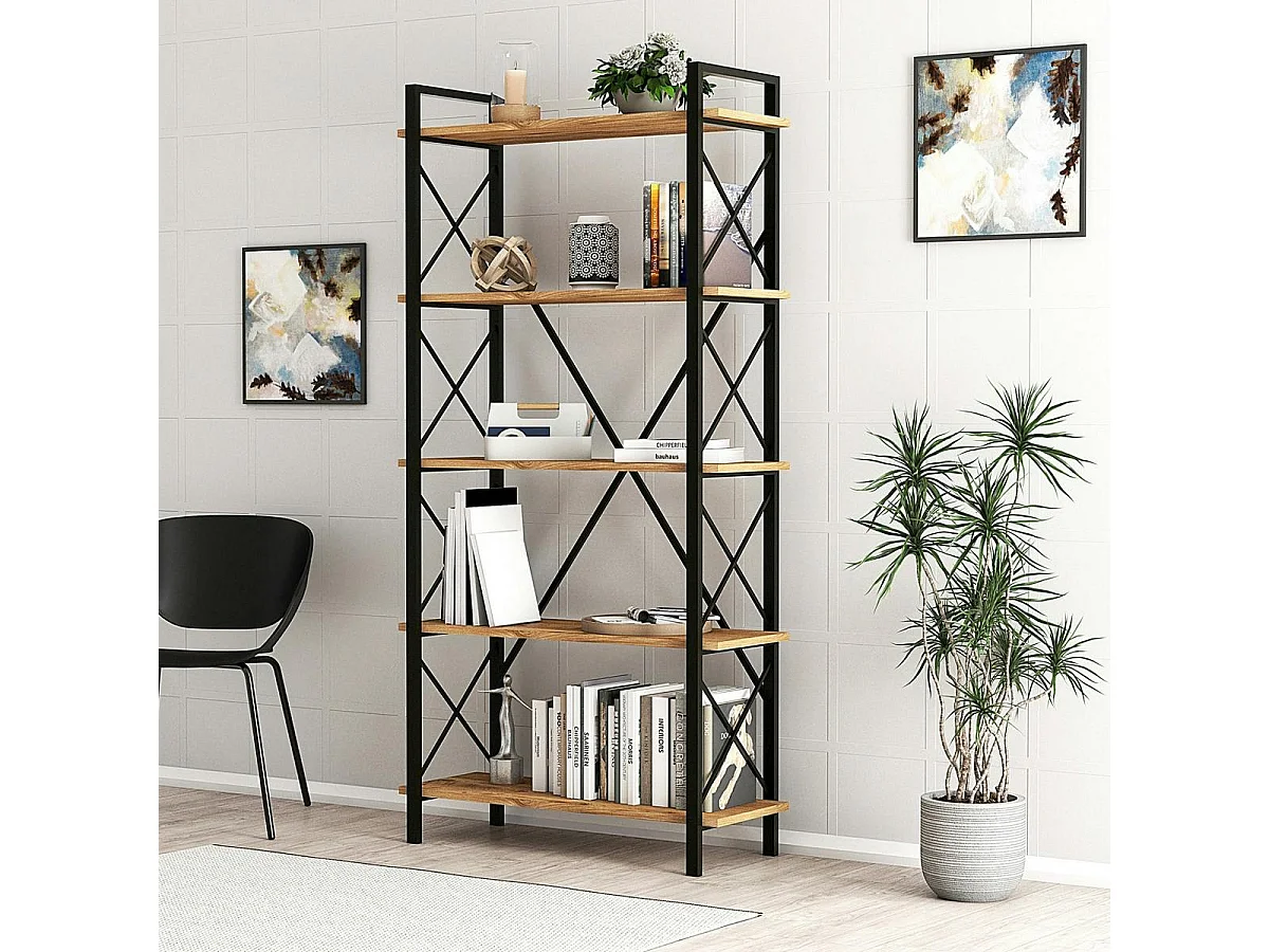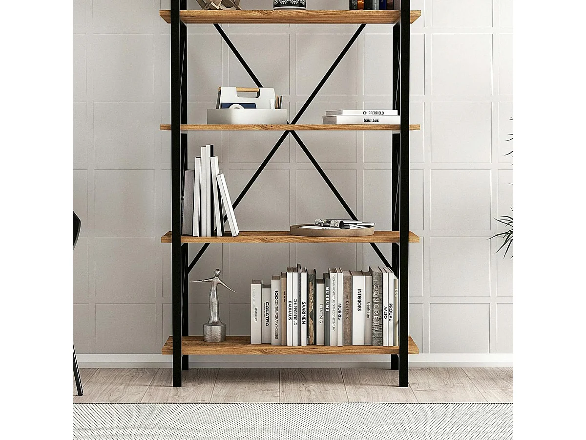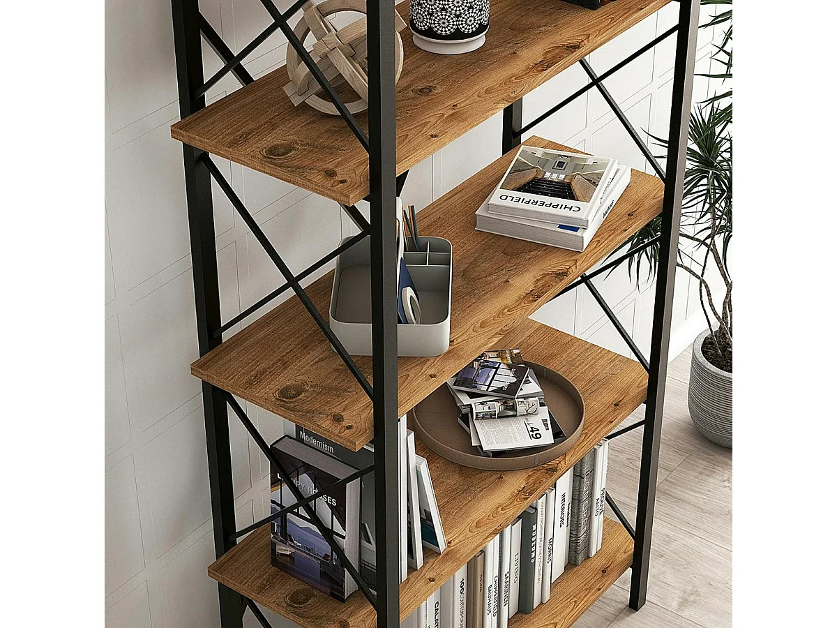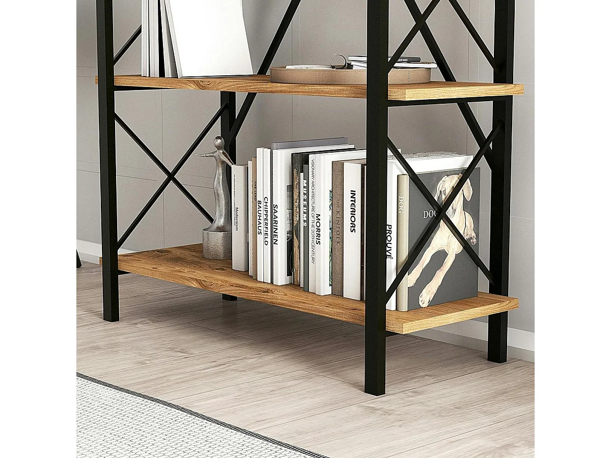 Bibliothèque industrielle effet bois foncé, dos croisé JENA