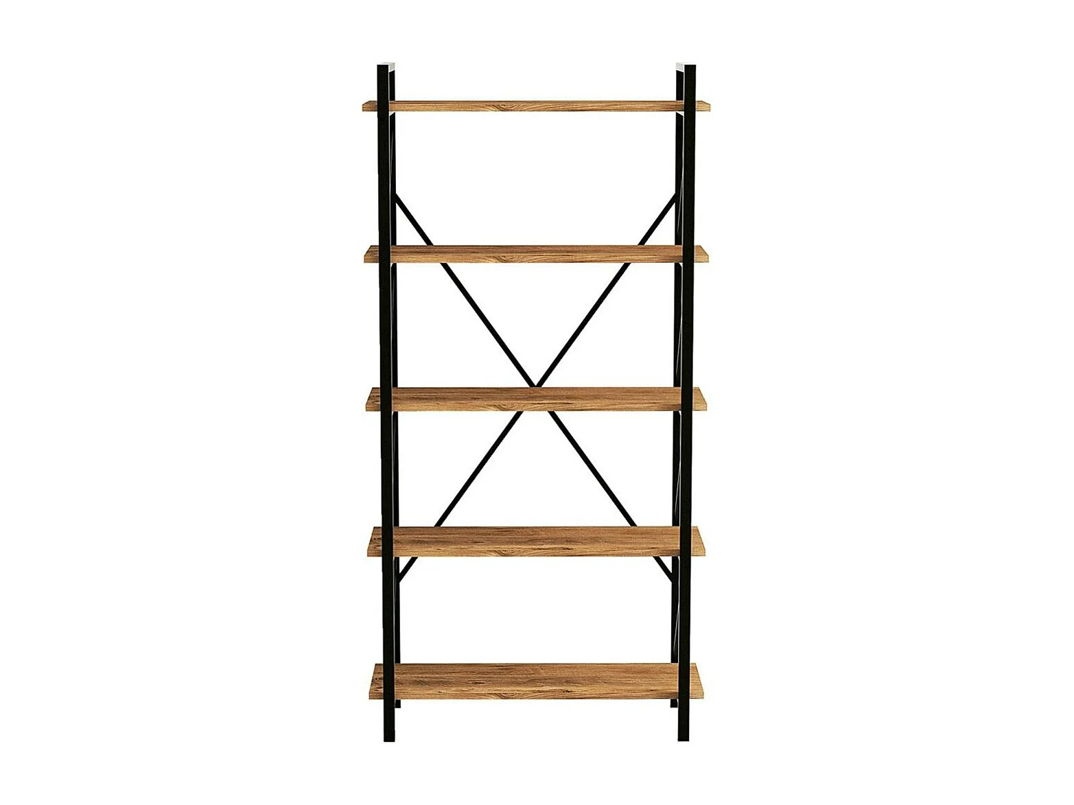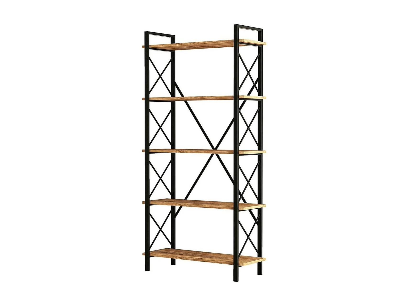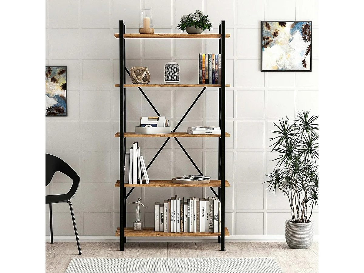 Bibliothèque industrielle effet bois foncé, dos croisé JENA