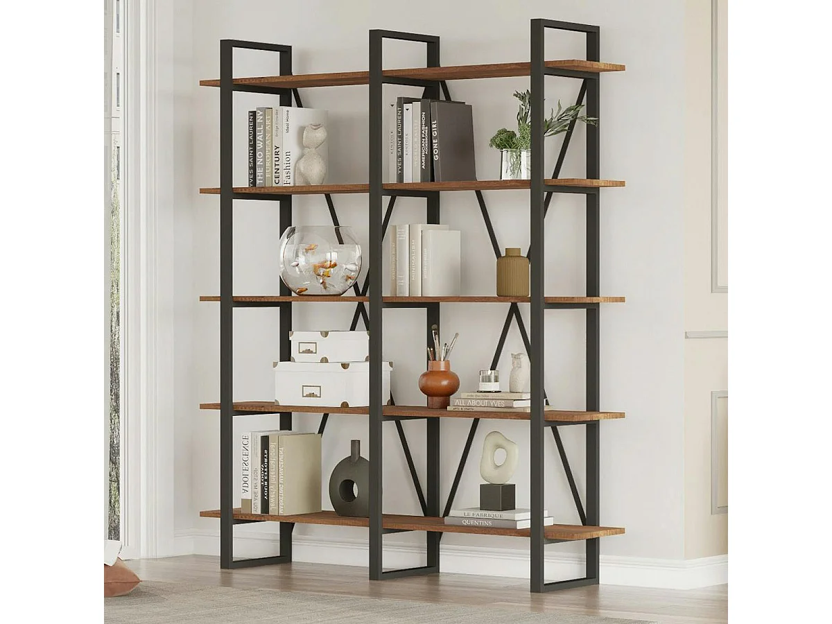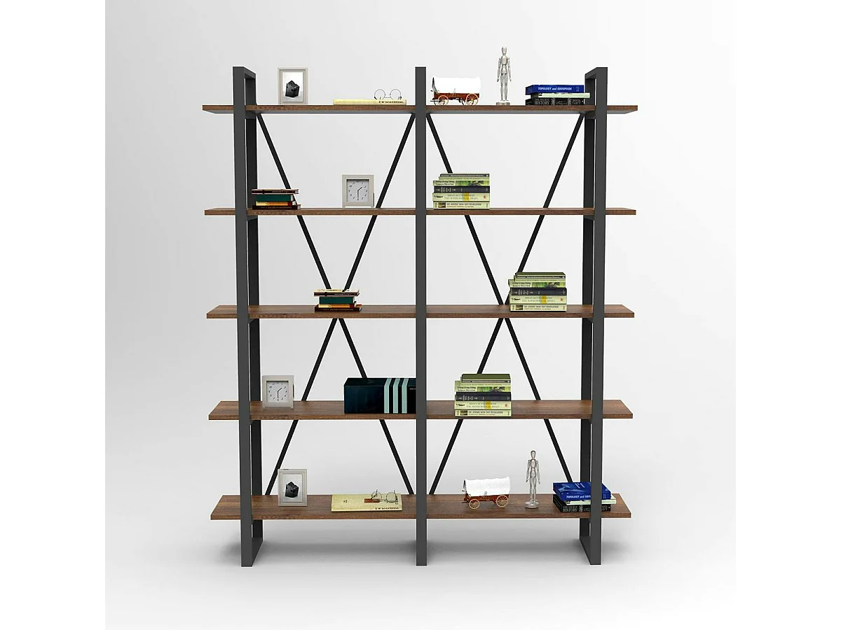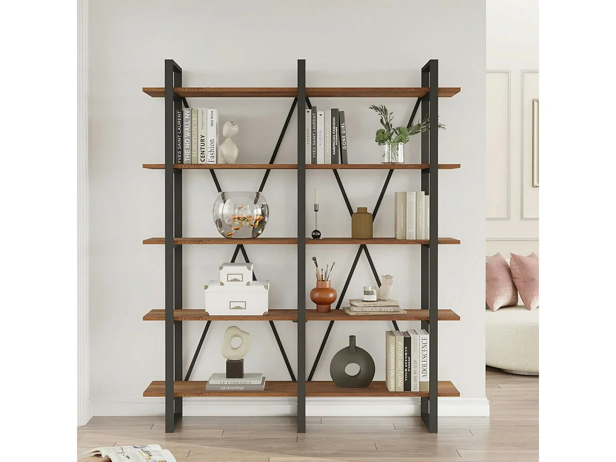 Bibliothèque industrielle effet bois foncé, dos croisé JENA