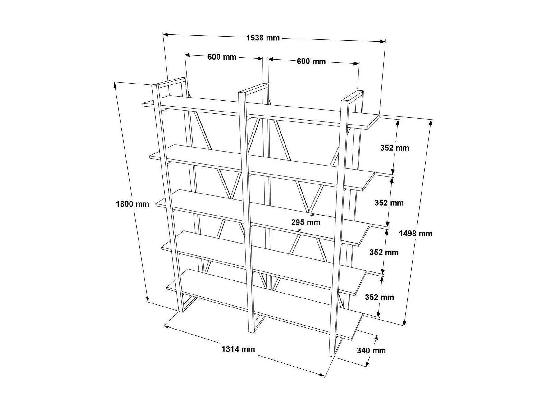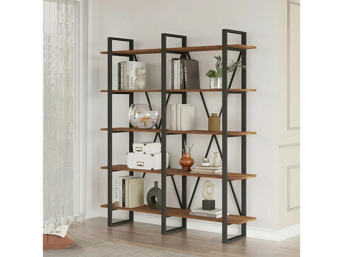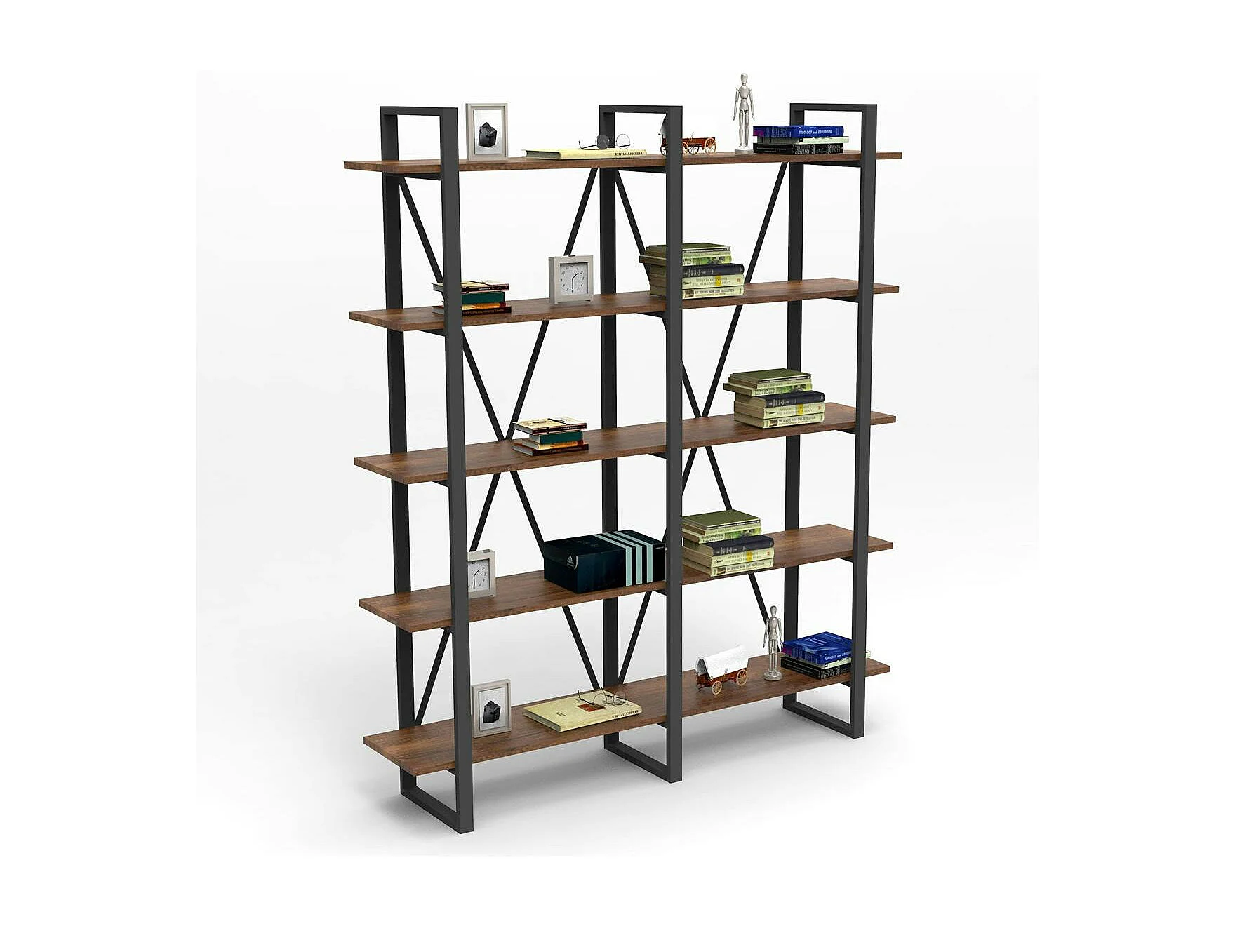 Bibliothèque industrielle effet bois foncé, dos croisé JENA