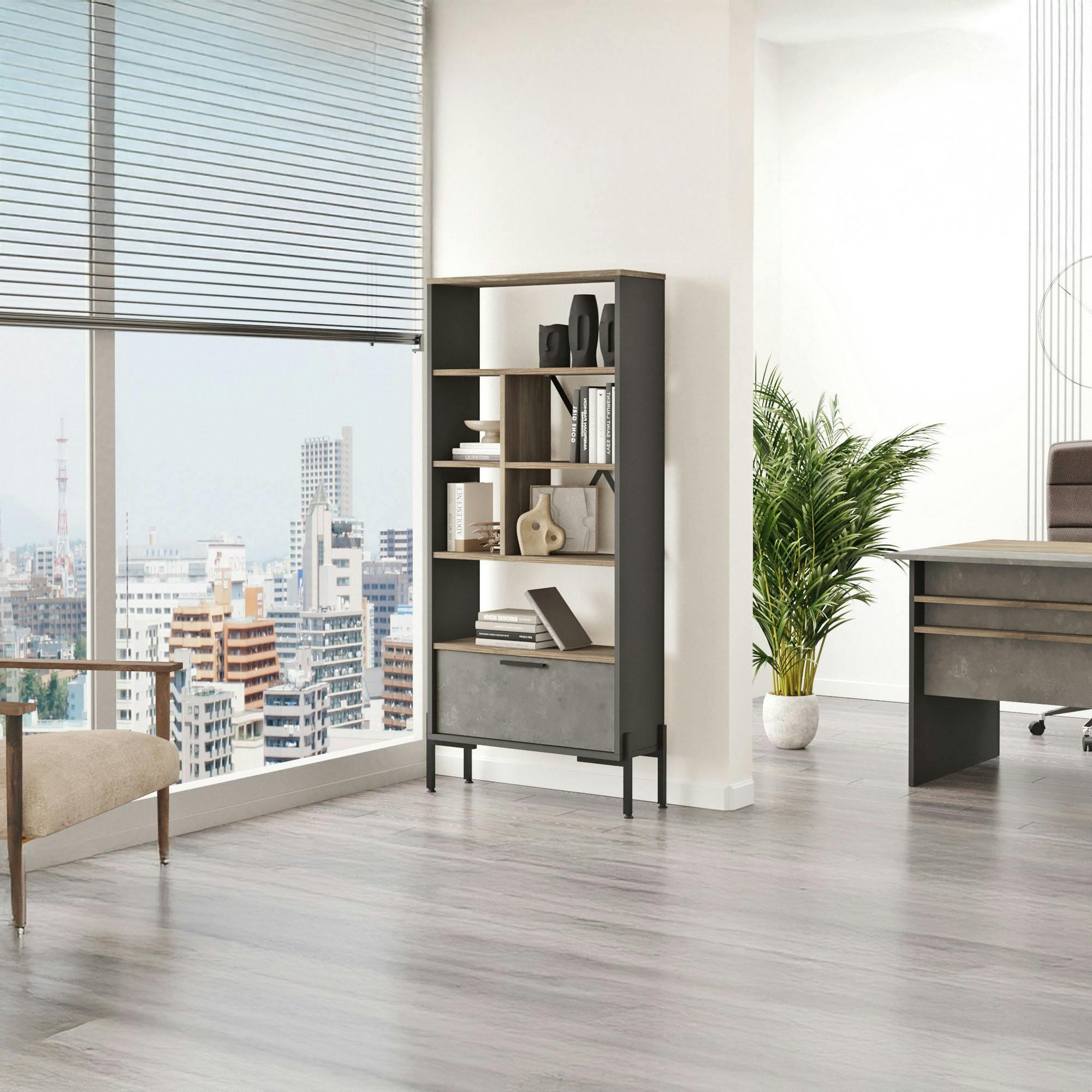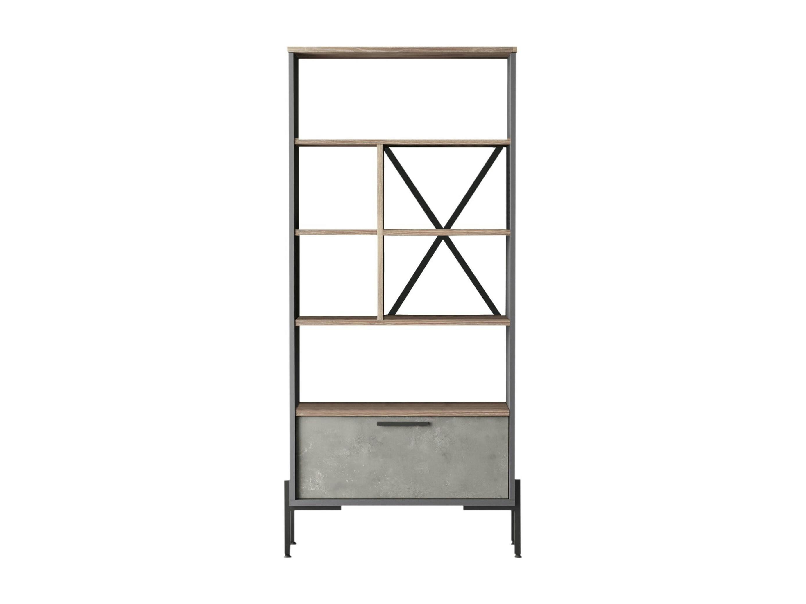 Bibliothèque industrielle effet bois & métal 1 porte JENA.