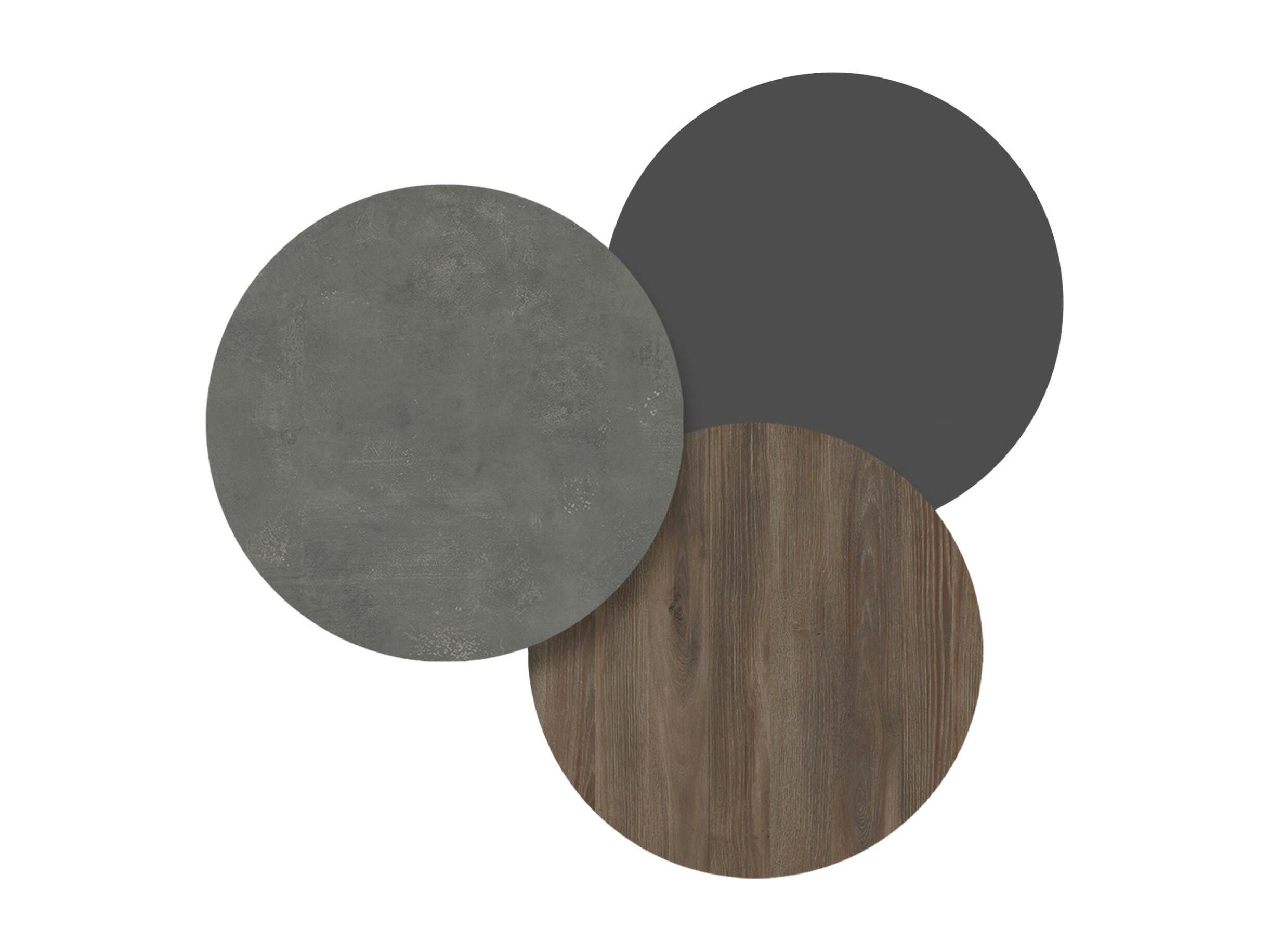Composition : Bois MDF recouvert de mélamine effet noyer et gris - Plastique dur - Métal.