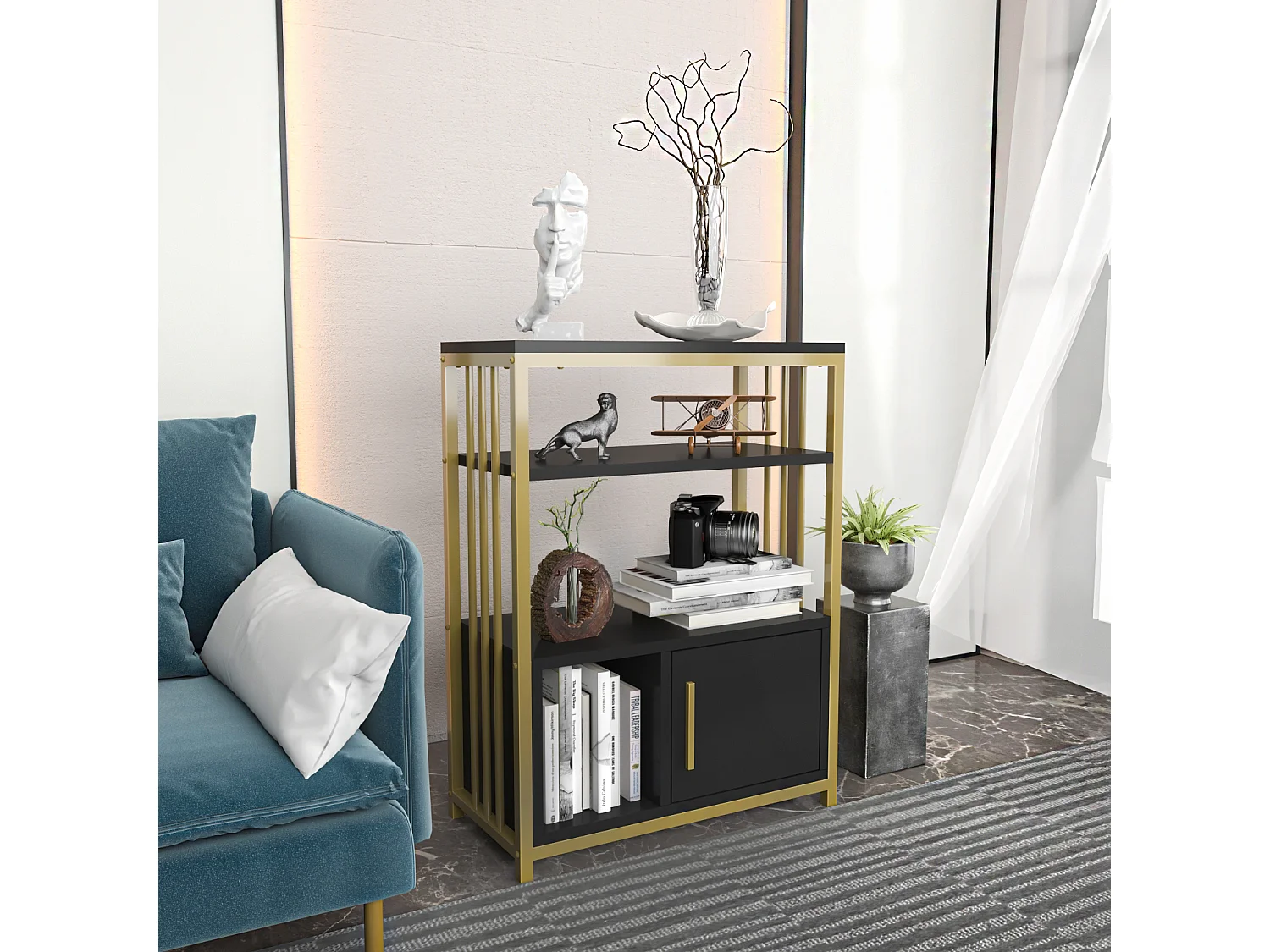 Bibliothèque Letos avec le cadre en métal et armoire, design stylistique (Anthracite et Doré)