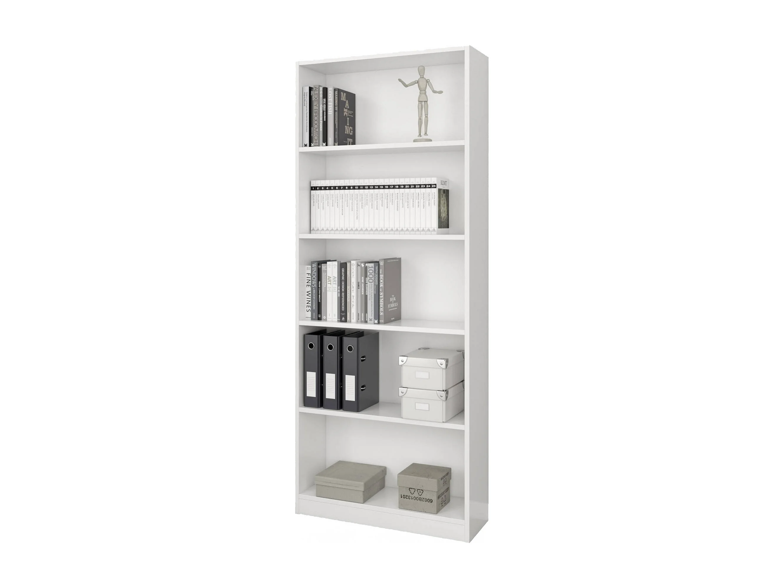 Bibliothèque Boston, Bibliothèque linéaire avec 4 étagères, Étagère de bureau ou de chambre, Bibliothèque moderne, 80x28h201 cm, Blanc