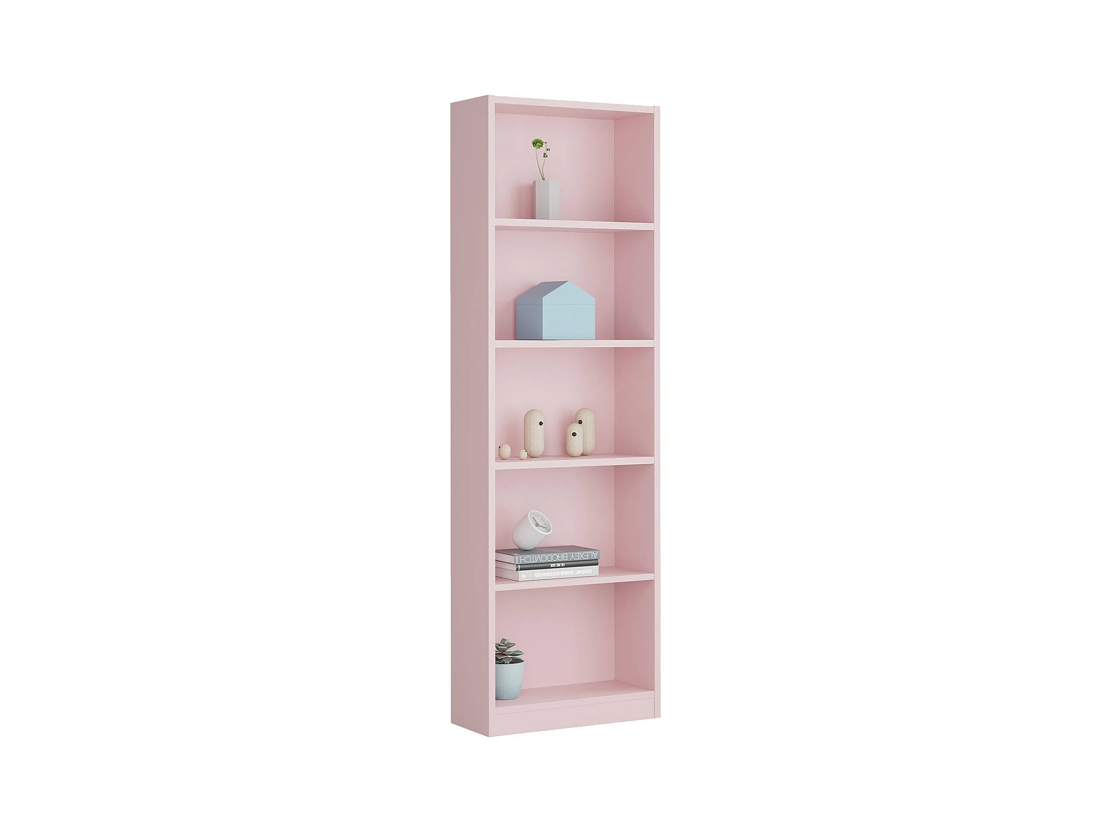Bibliothèque Dmacagg, Bibliothèque haute avec 5 étagères, Etagère de bureau ou de chambre, Etagère moderne avec compartiments, 52x25h180 cm, Rose