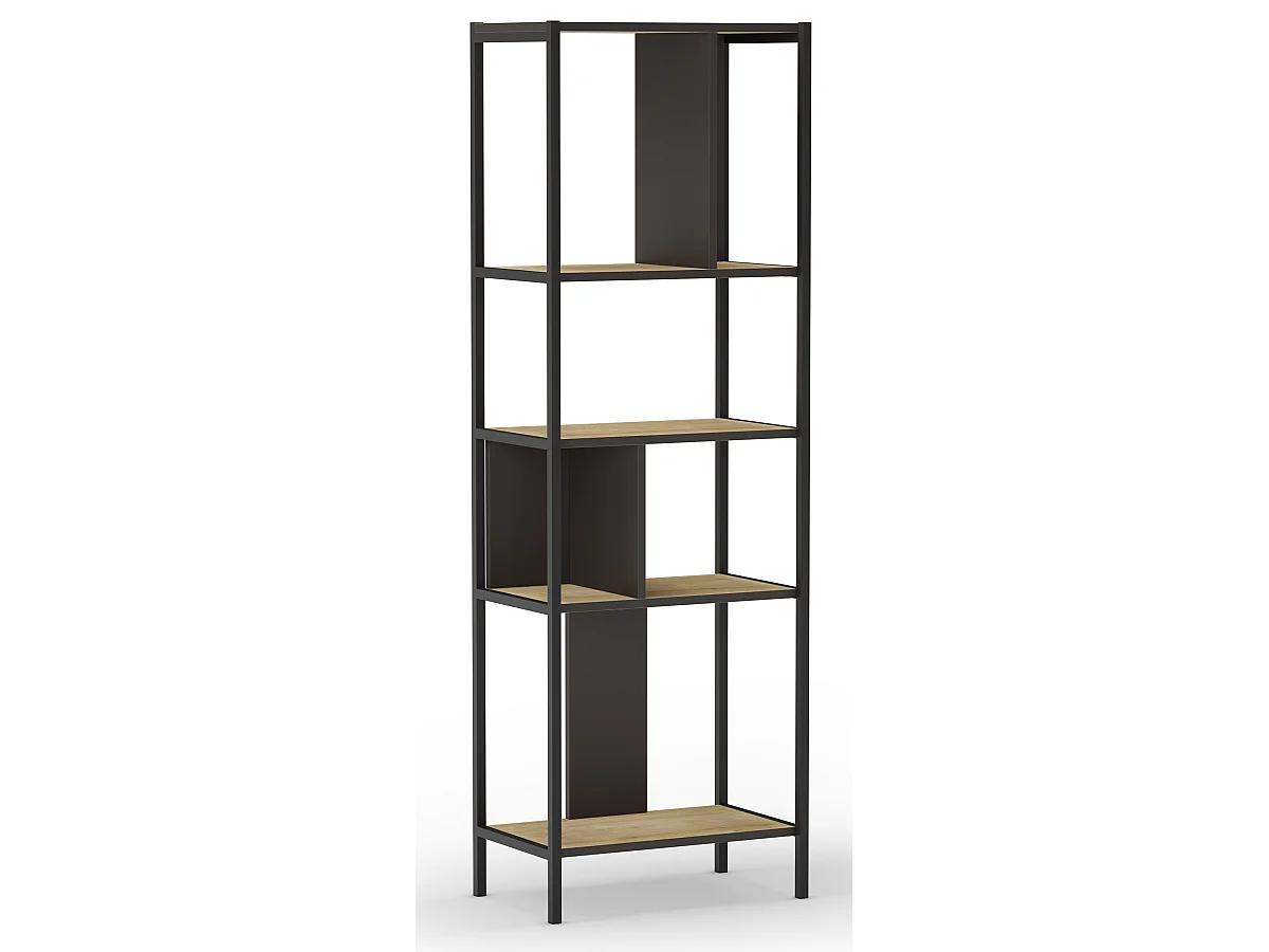 Bibliothèque, meuble étagère aspect bois coloris chêne et métal noir - Longueur 58 x Profondeur 35 x Hauteur 175 cm