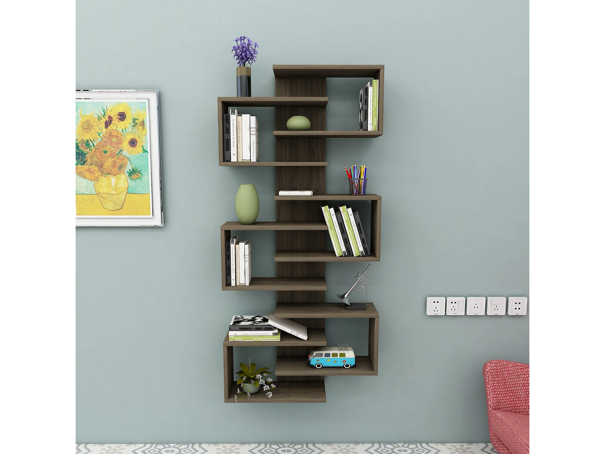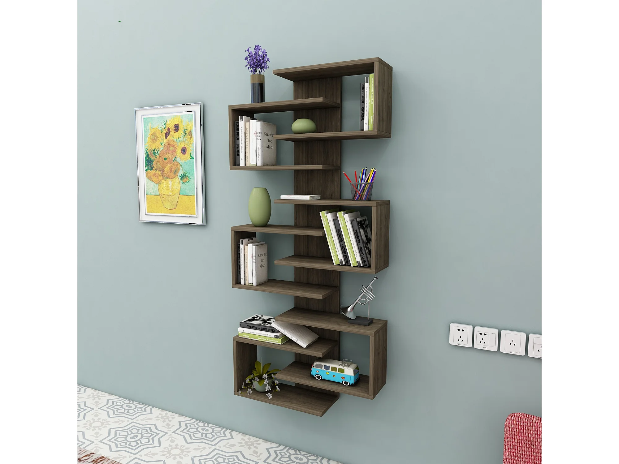 Bibliothèque moderne en panneaux de particules mélaminés – 75 cm x 161,3 cm x 21,3 cm – Noyer