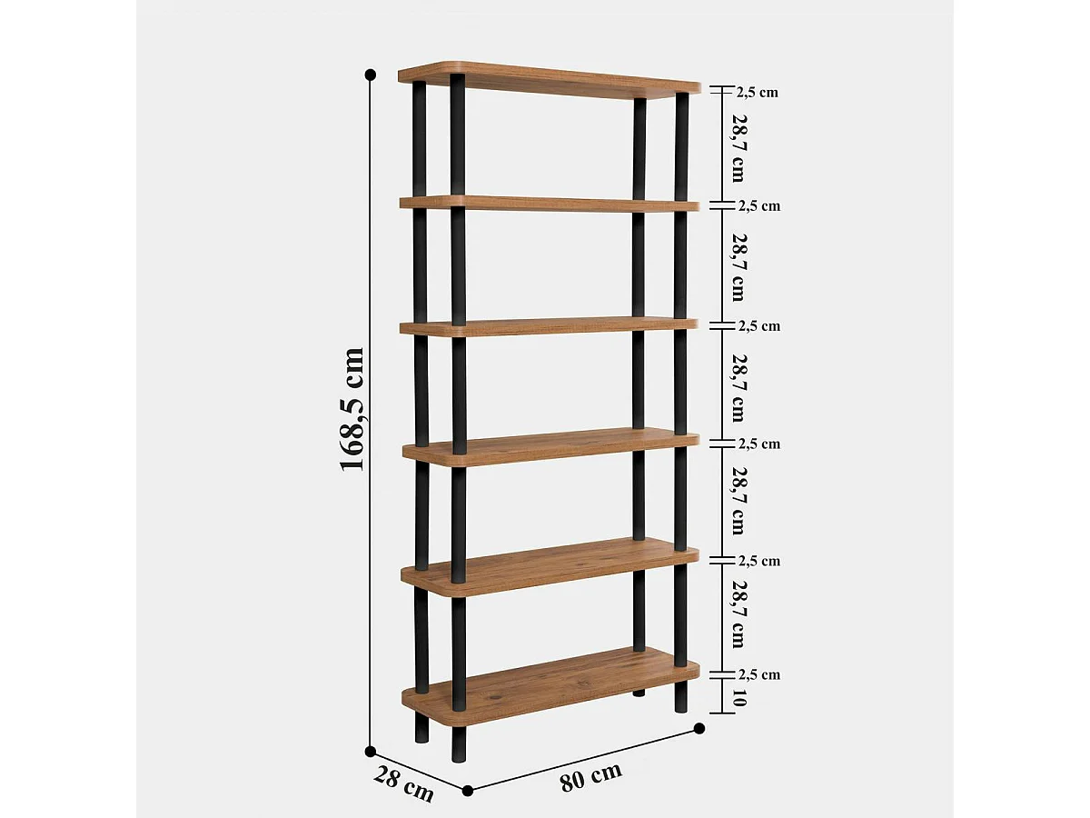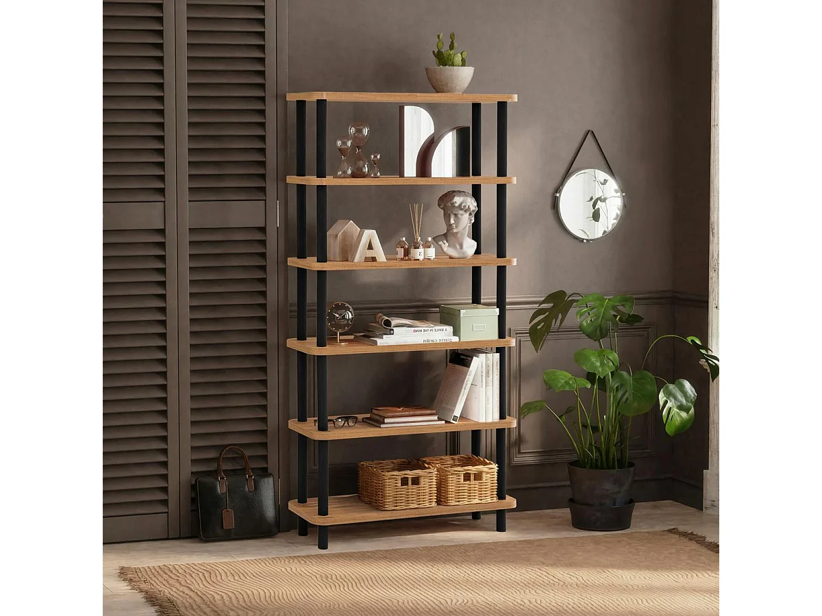 Bibliothèque moderne ouverte effet bois et métal noir MARFA