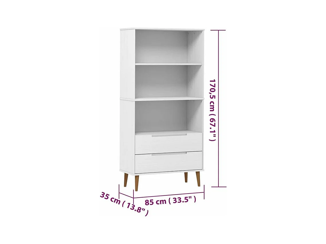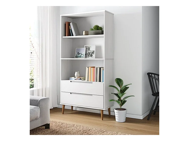 Bibliothèque MOLDE Blanc 85x35x170,5 Bois massif de pin
