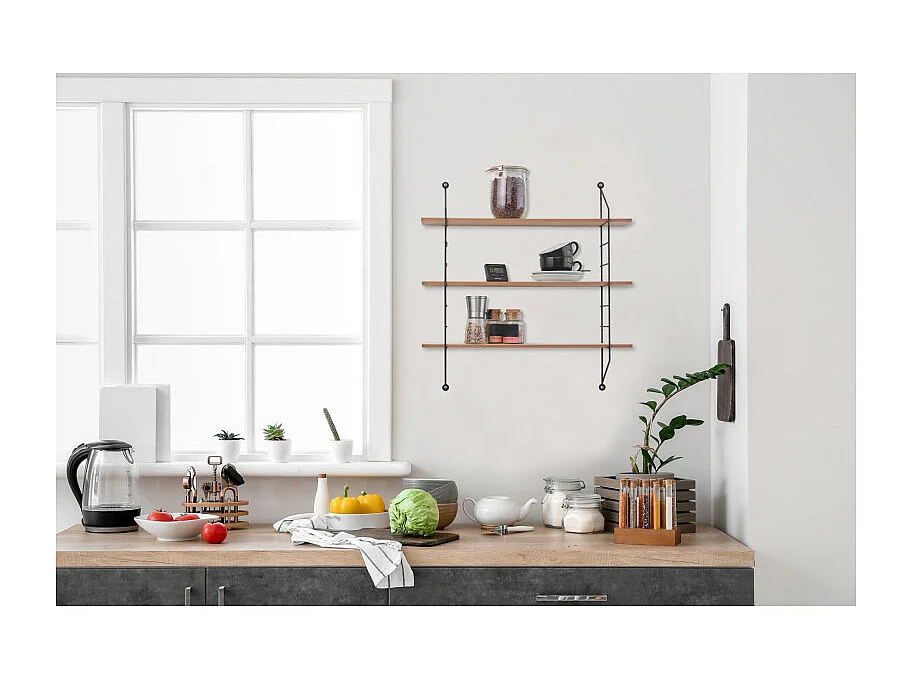 Étagères murales à 3 niveaux avec barres 2 pcs noir 30x25x100cm OFR14910 BonneVie Meuble