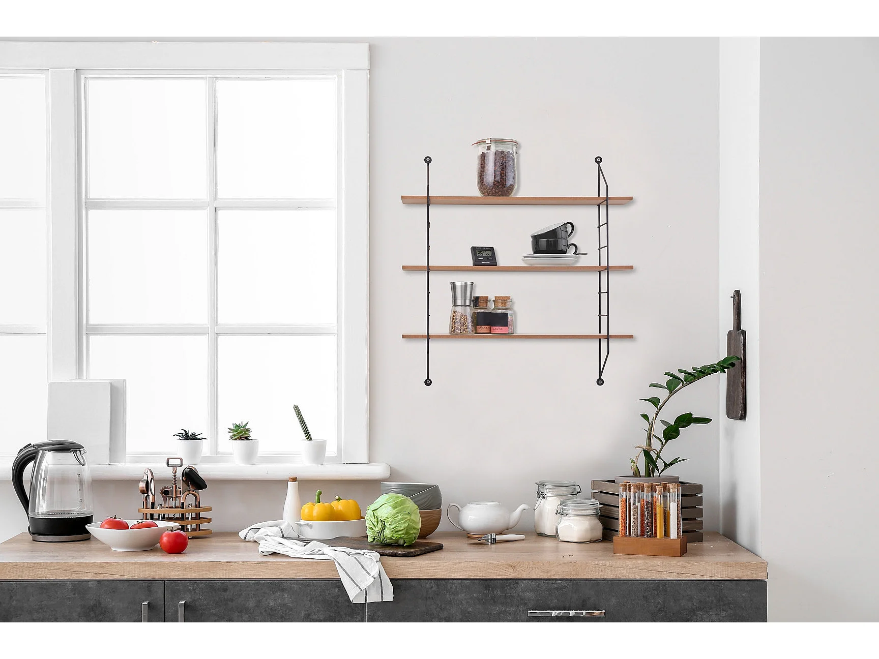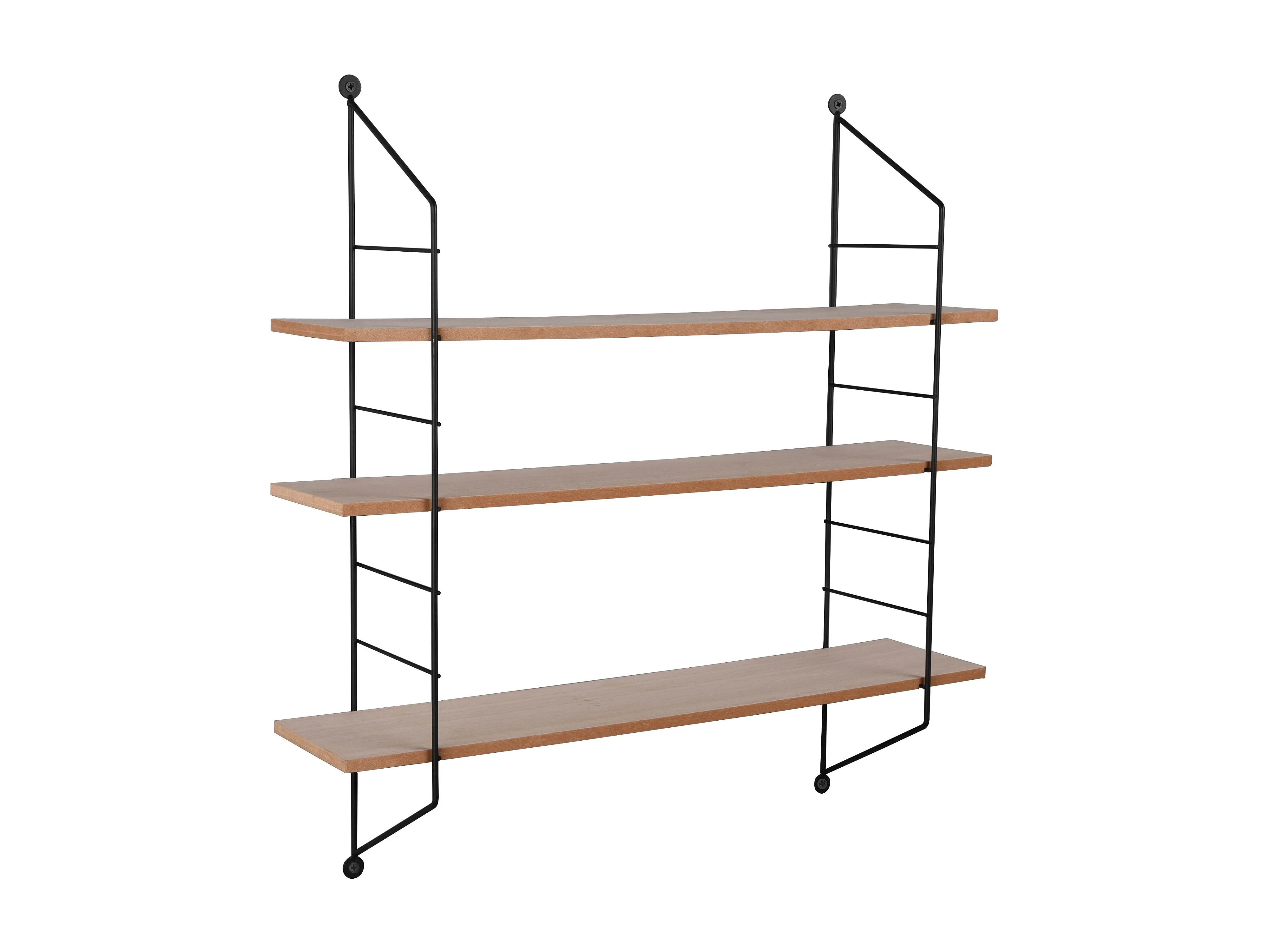 Étagère murale L120 cm revêtement décor noir et chêne clair - BAILEY