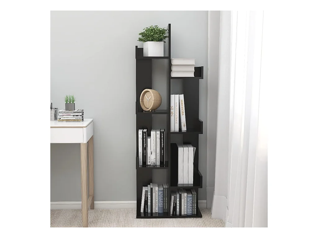 Bibliothèque Noir 48x25,5x140 cm Aggloméré OFR92609 BonneVie Meuble
