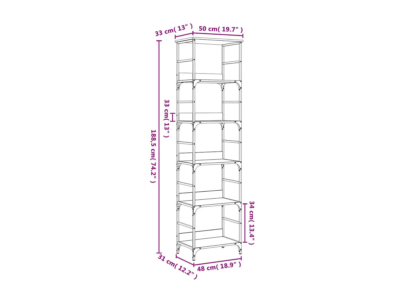 Bibliothèque noir 50x33x188,5 bois d'ingénierie