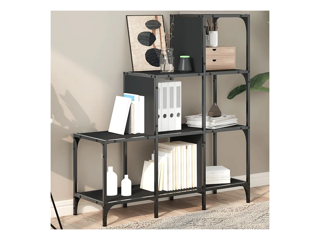 Bibliothèque noir 92x30x102 bois d'ingénierie et métal