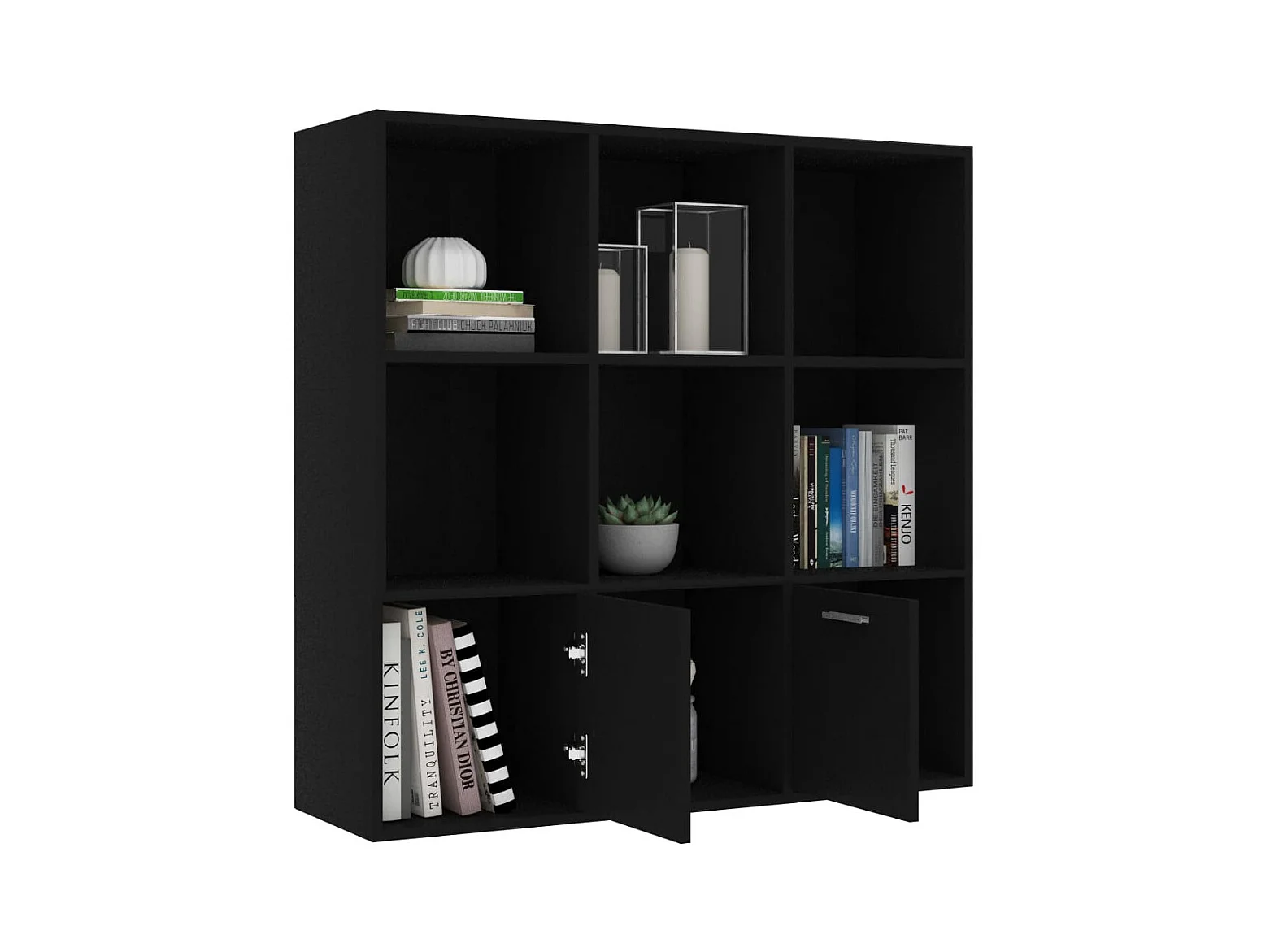 Bibliothèque étagère en bois Valika 98cm - 7 niches 2 portes-Noir
